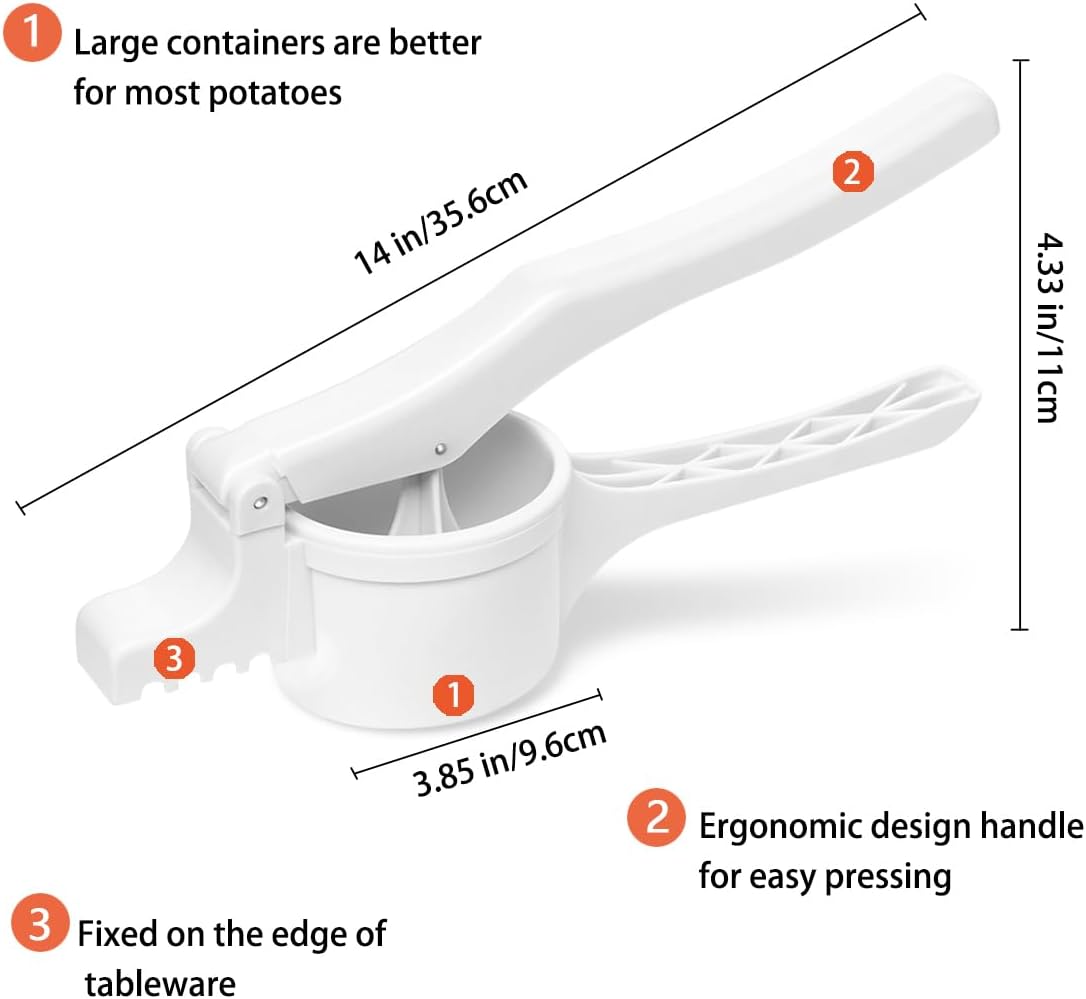 - Easy to Clean: Potato Press can be easily disassembled and any food residue can be washed off with warm water. The blades can be placed in the top rack of the dishwasher for easy maintenance.
