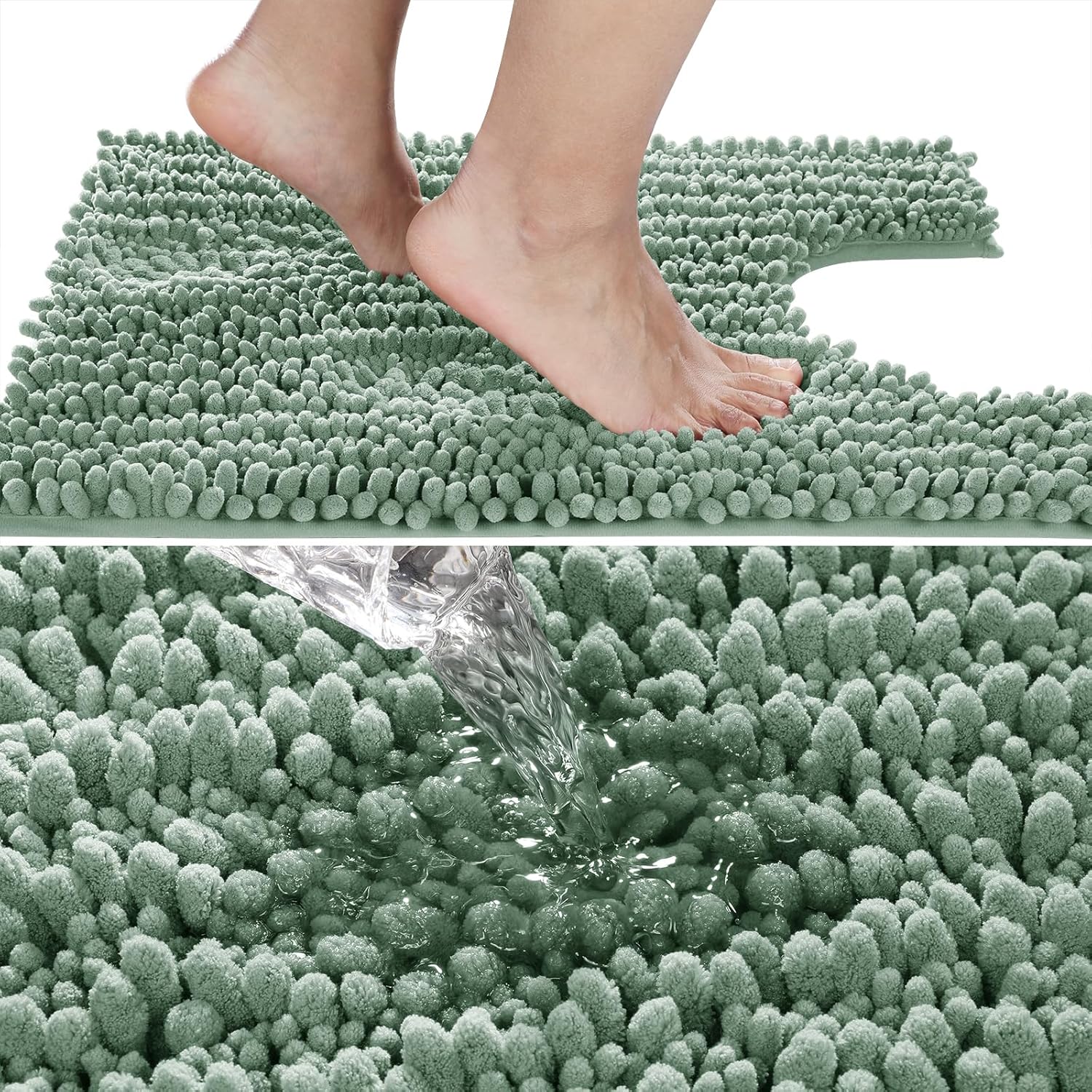 Yimobra Toilet Rug U Shaped Washable 24x20 Inch - Ultra Soft Absorbent Chenille Bath Rugs for Toilet, Quick Dry & Machine Washable, Non Slip Contour Bathroom Mat, Green