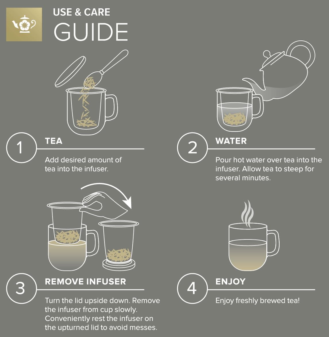 - Multi-Purpose Lid/Dish: The included glass lid serves a dual purpose - use it as a lid to keep your tea warm while steeping, and when your tea is ready, flip it over to use as a convenient dish for the infuser, keeping your countertop clean and tidy.