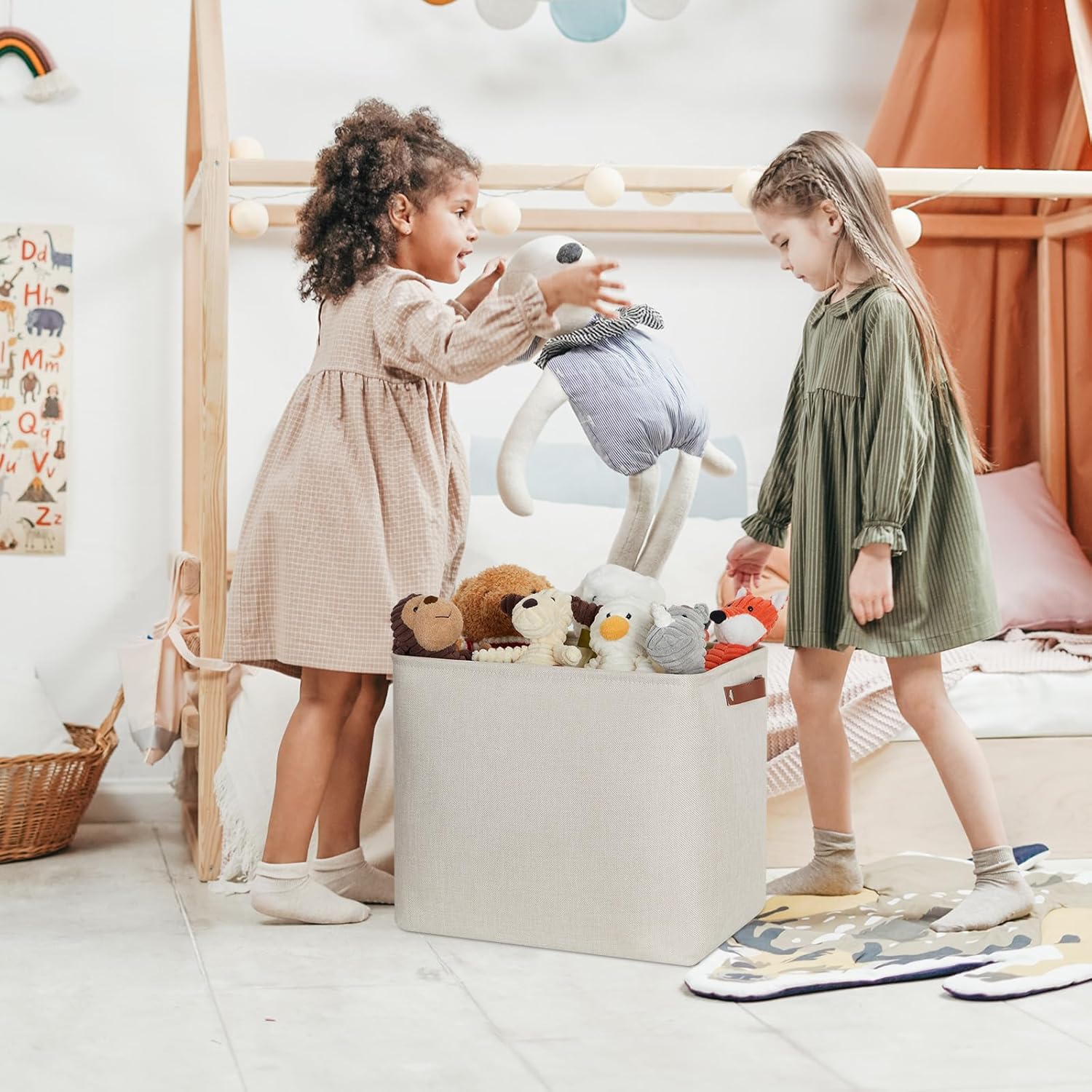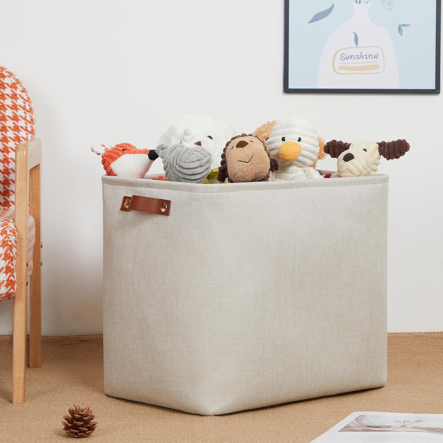 DULLEMELO Extra Large Storage Baskets, Fabric Storage Bins for Organizing Shelves Nursery Toys Books, Closet Baskets and Bins with Handles, Beige, 2-Pack