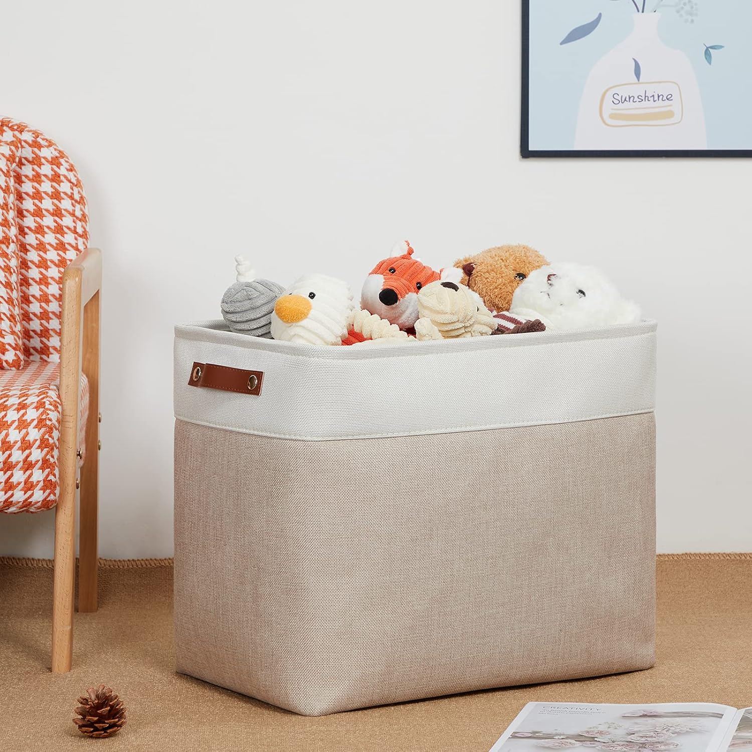 DULLEMELO Extra Large Storage Baskets, Fabric Storage Bins for Organizing Shelves Nursery Toys Books, Closet Baskets and Bins with Handles, White&Khaki, 2-Pack