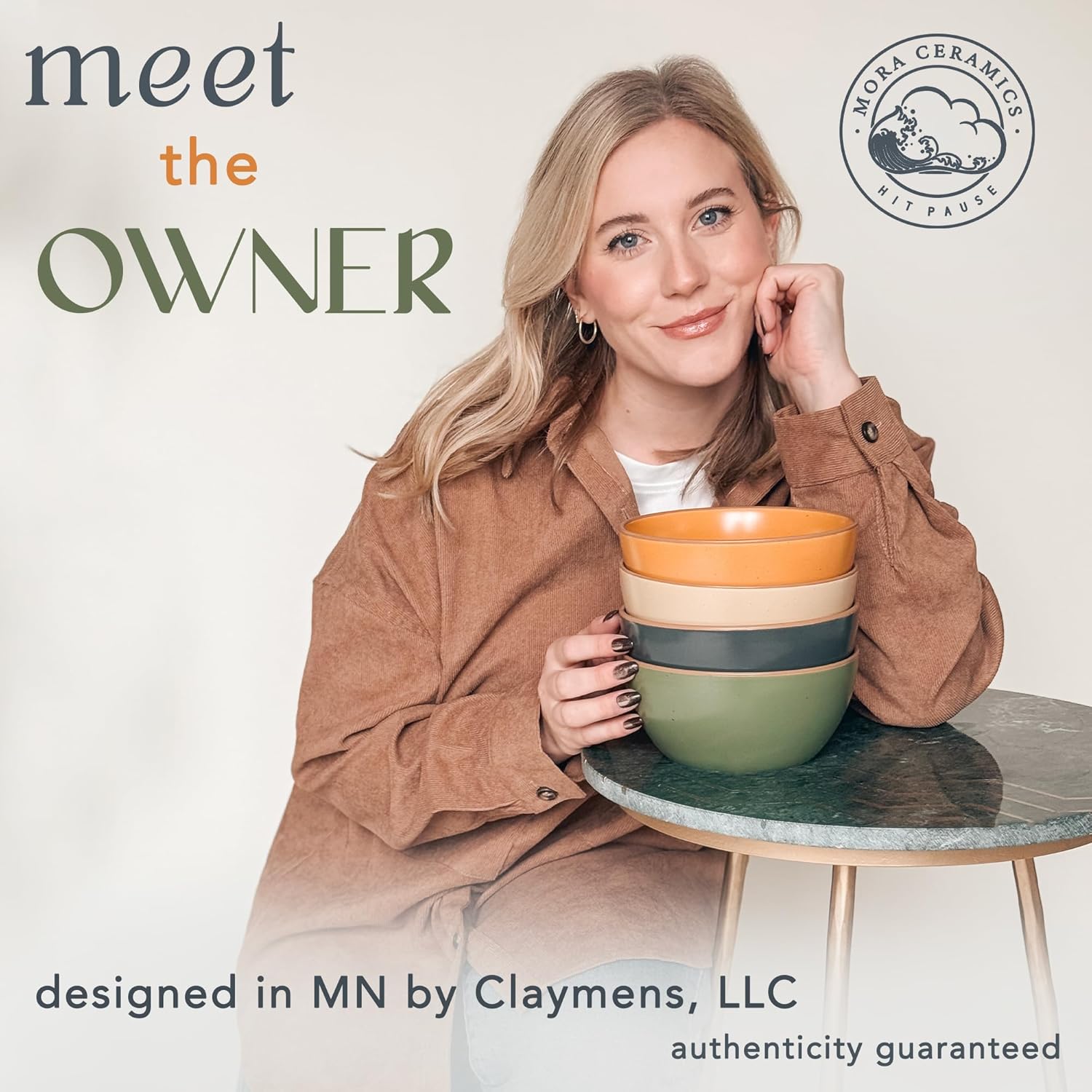 Mora Ceramic Artisan Matte Bowls For Kitchen 28oz - Bowl Set of 4 - For Cereal, Salad, Pasta, Soup, Dessert etc - Dishwasher, Microwave, and Oven Safe - For Breakfast, Lunch and Dinner - Safari Colors
