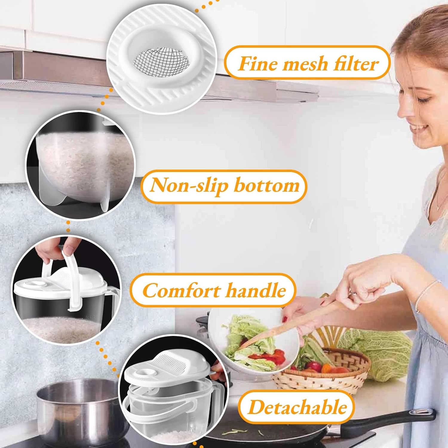 - Rice Washer Strainer Bowl: Can quickly drain the water. The water pressure is used to complete the work, and the washed water overflows from the water filter.