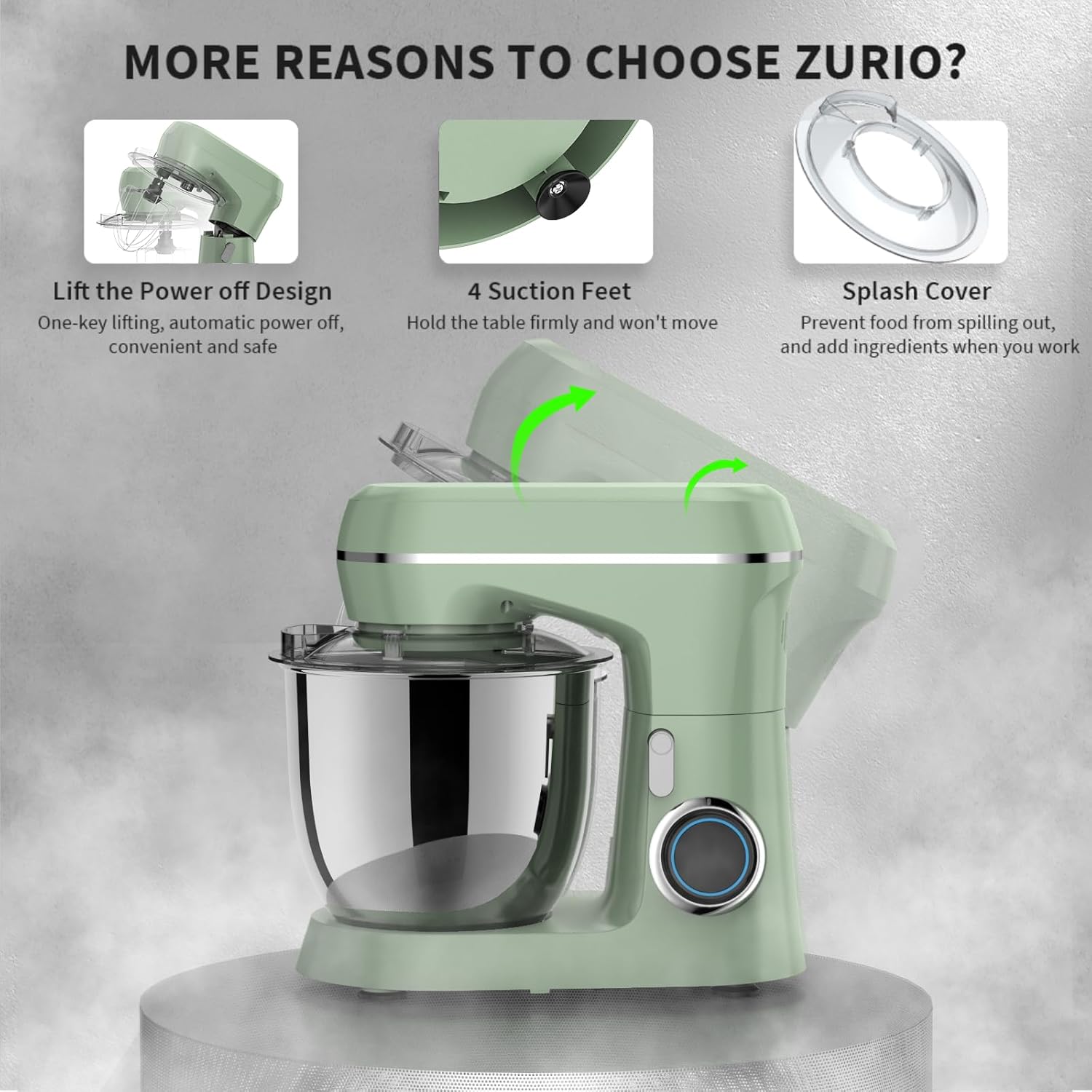 - Upgraded Multi Attachments β Die-cast dough hook and flat beater, stainless steel whisk are easy to attach, using upgraded material, more sturdy and durable. There is a gasket at the top joint to prevent food residue from splashing into the joint to make cleaning more convenient.