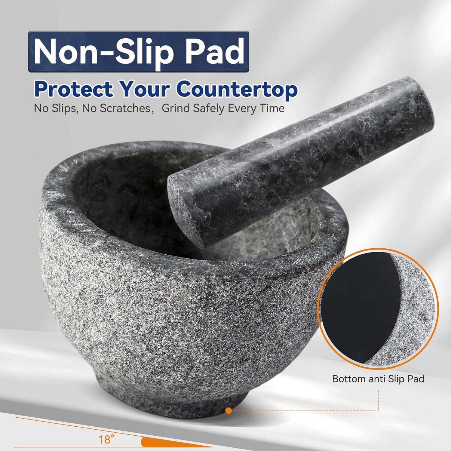 - 【Healthy and Safety】The marble mortar and pestle set is super safe in contact with food. Natural stone has superior safety properties that will not spoil the flavor of food or leave food residue, The external is well-polished, super easy to clean.