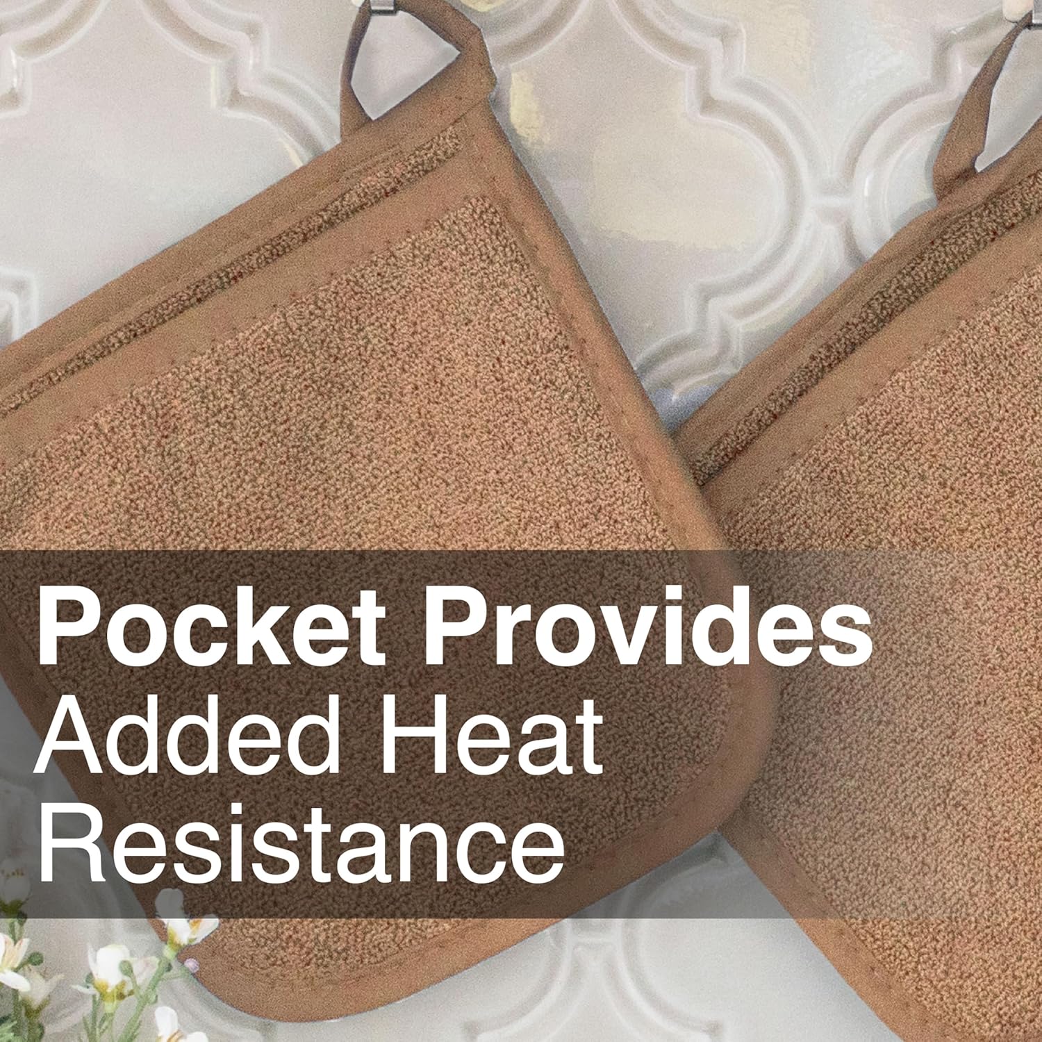 - CONVENIENT HANG LOOP. We know that a busy kitchen requires tools that are always within reach. That's why each pocket mitt comes complete with a handy hanging loop. Hang them by your oven or kitchen island, and you'll always have your trusty mitts right where you need them.