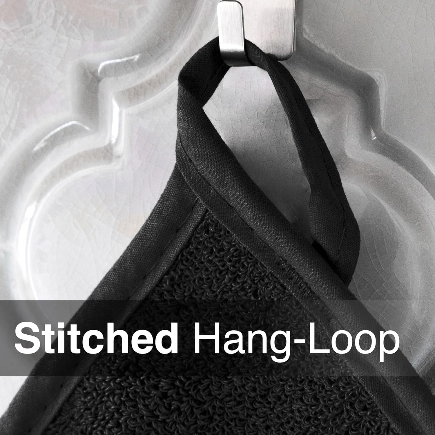 RITZ Terry Potholder & Hot Pad: Unparalleled Heat Resistant, Durable 100% Cotton – Ergonomically Designed for Optimal Grip – Easy-Care Machine Washable – 4-Pack, Black