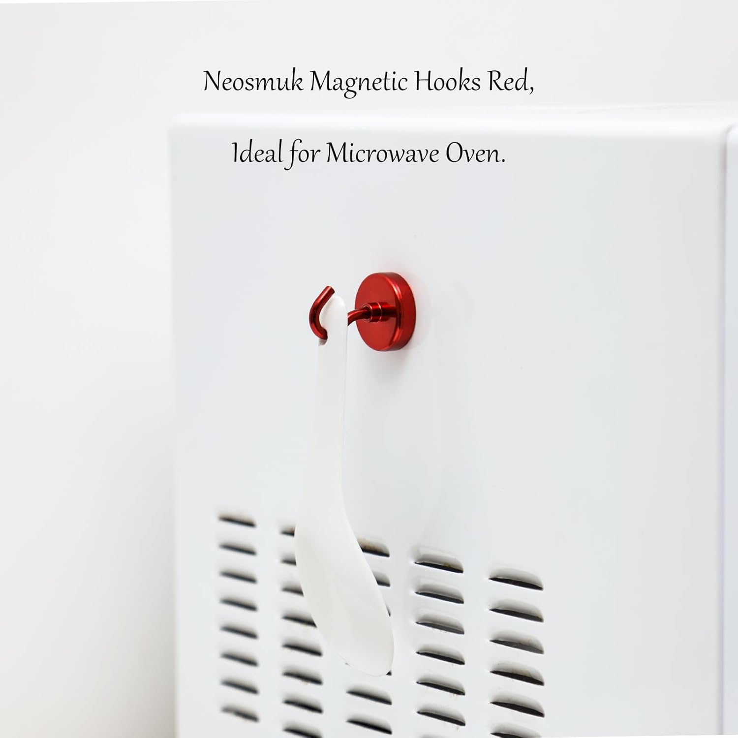 Neosmuk Magnetic Hooks Heavy Duty,Strong Magnet with Hook for Fridge, Super Neodymium Extra Strength Industrial Hooks for Hanging, Magnetic Hanger for Toolbox, Cruise, Grill(Red,10 Pack)
