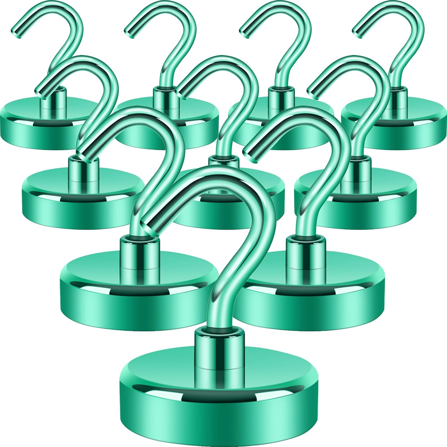 Neosmuk Magnetic Hooks Heavy Duty,Strong Magnet with Hook for Fridge, Super Neodymium Extra Strength Industrial Hooks for Hanging, Magnetic Hanger for Toolbox, Cruise, Grill(Green,10 Pack)