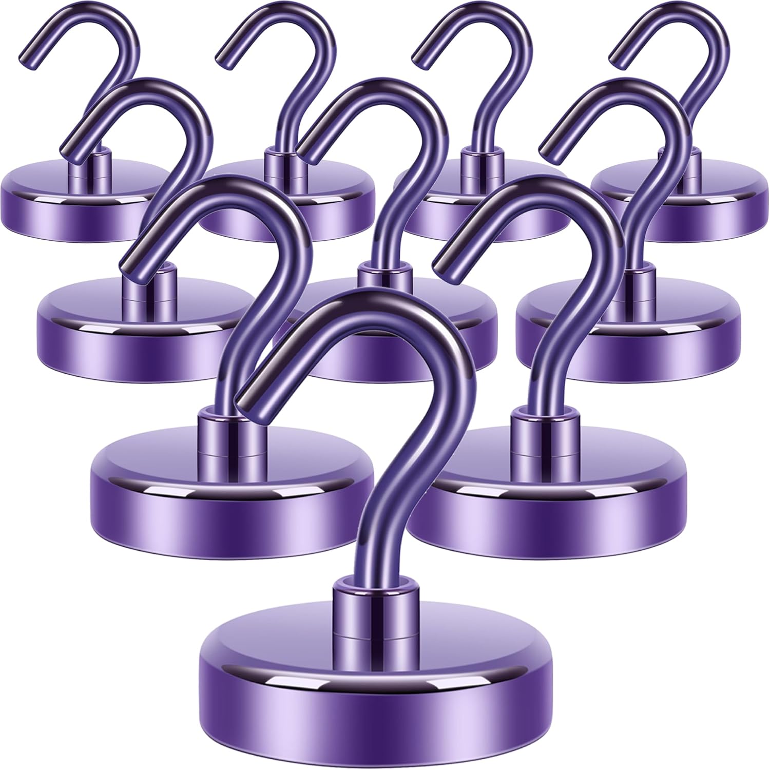 Neosmuk Magnetic Hooks Heavy Duty,Strong Magnet with Hook for Fridge, Super Neodymium Extra Strength Industrial Hooks for Hanging, Magnetic Hanger for Toolbox, Cruise, Grill(Purple,10 Pack)