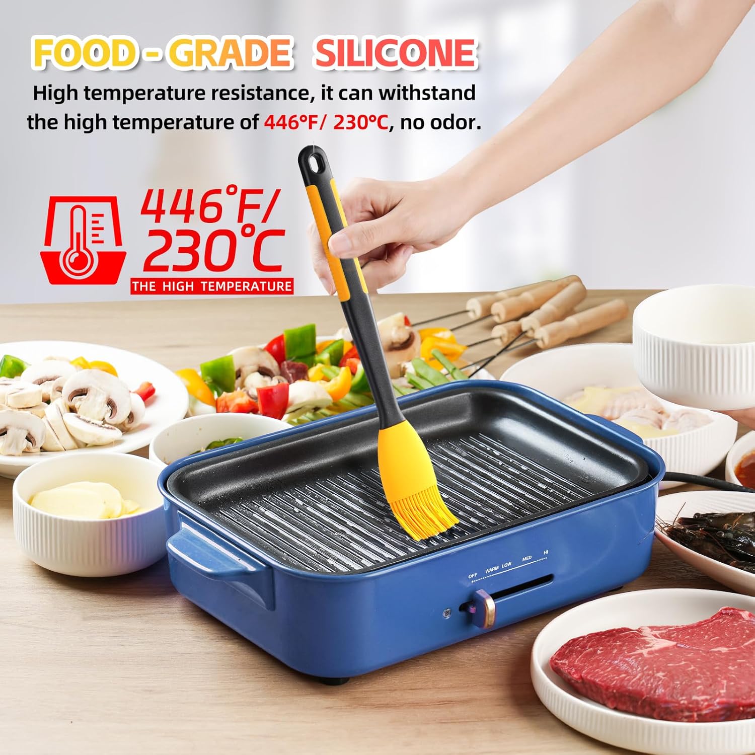 - 【EXTRA LARGE AND LONG HANDLE】Silicone spatula and pastry brush are both with 13.6inch totall length , the extended handle effectively prevents burns from high temperatures and scalds from oil splashes.