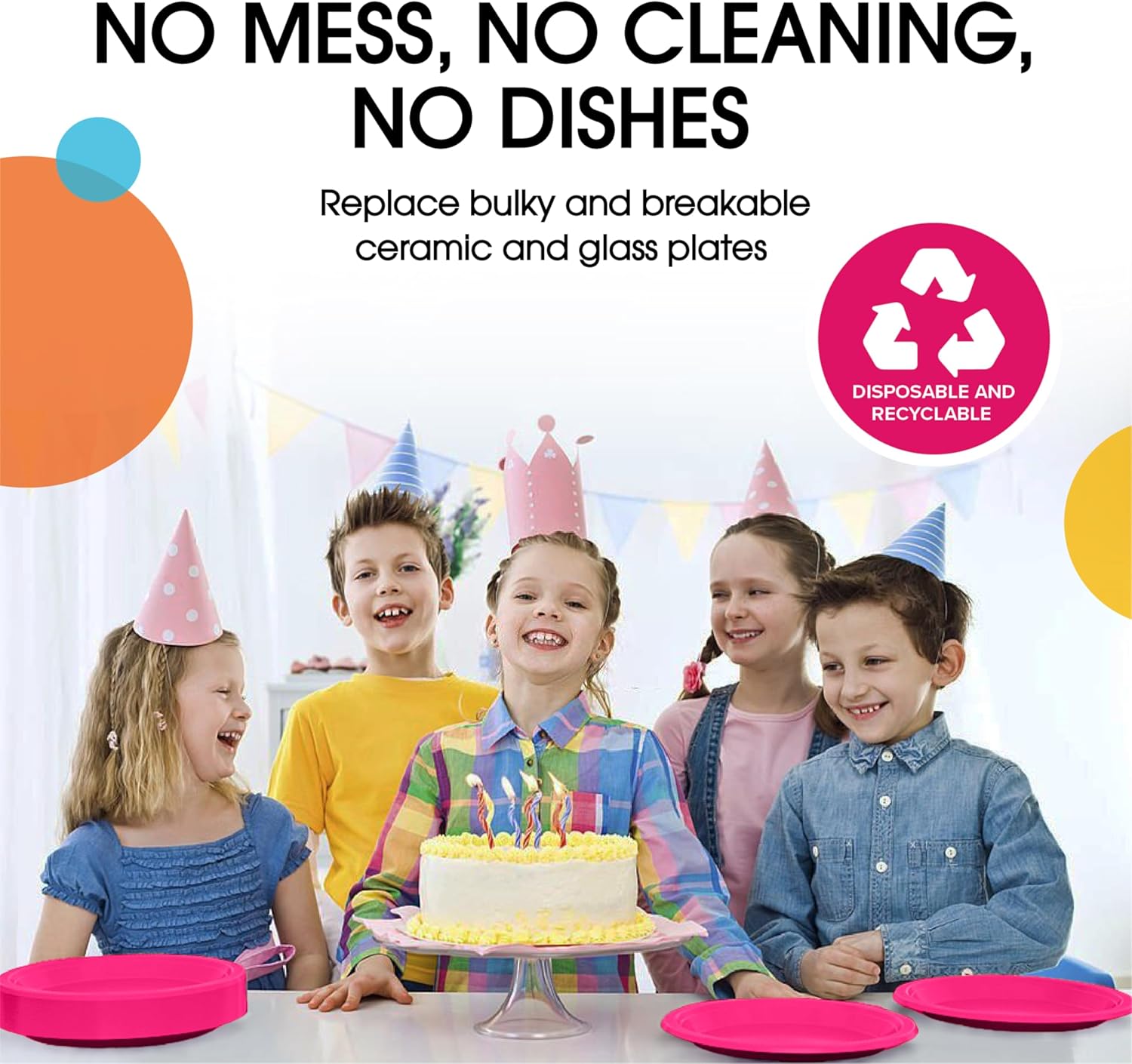 - Health & Safety: Our Cerise plastic plate set is made with food safe materials, ensuring the health and safety of your guests. Whether it's for a birthday party or a picnic, you can trust that these disposable plastic plates meet the highest standards of hygiene, providing peace of mind for you and your loved ones.