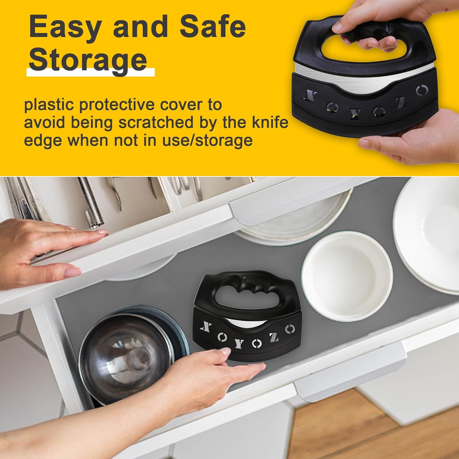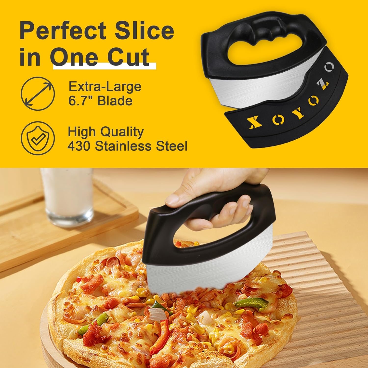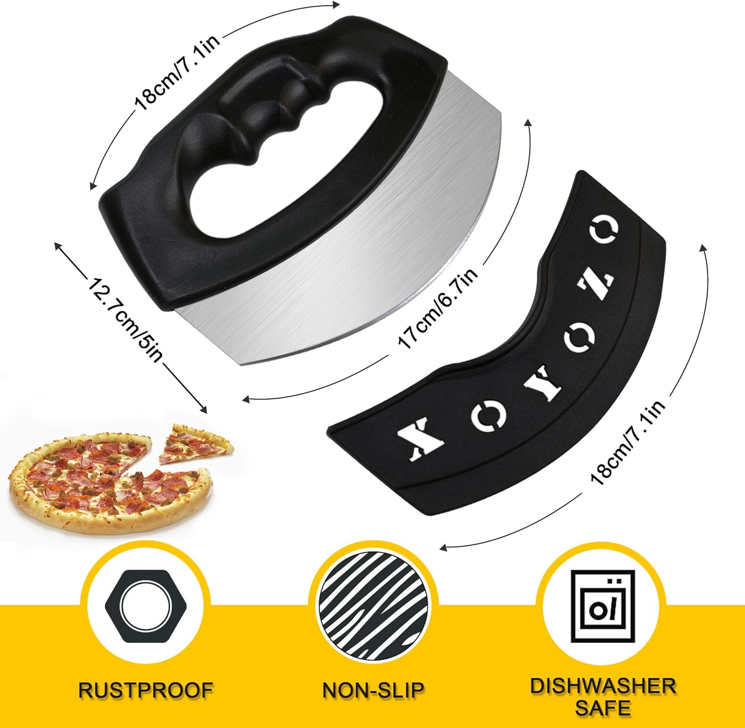XoYoZo Pizza Cutter Salad Chopper Large Stainless Steel Blade with Cover, Dough Rocker Mezzaluna Knife for Kitchen Gadgets