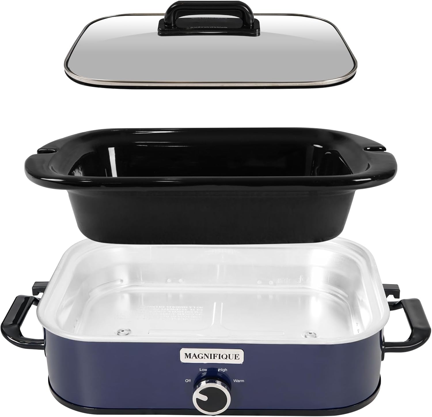 Magnifique 4-Quart Slow Cooker with Casserole Manual Warm Setting - Perfect Kitchen Small Appliance for Family Dinners, Dishwasher Safe Crock, Blue