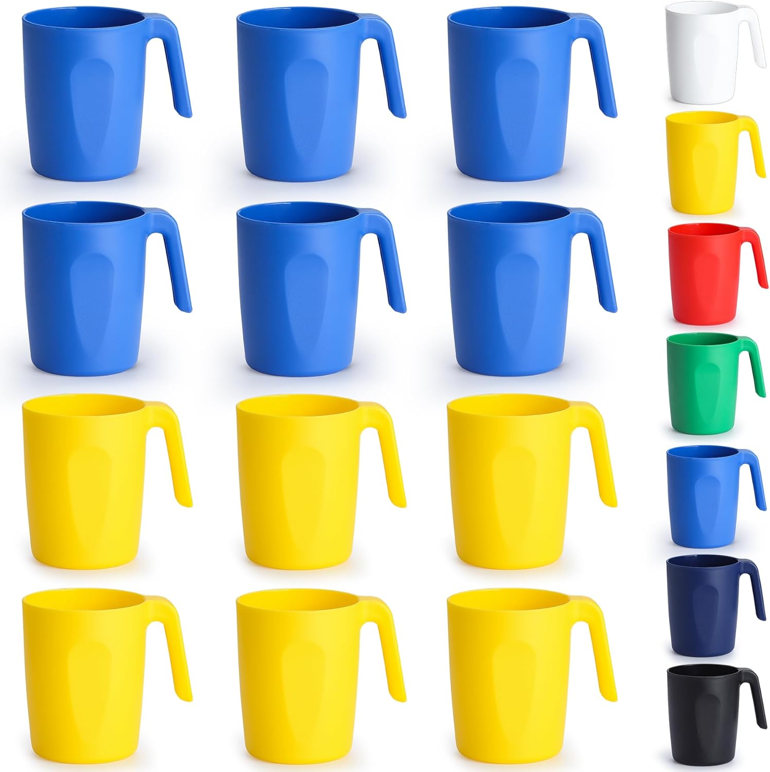 Kyraton Plastic Mug Set 12 Pieces, UKR Color Unbreakable And Reusable Light Weight Travel Coffee Mugs Espresso Cups Easy to Carry And Clean, Dishwasher Safe