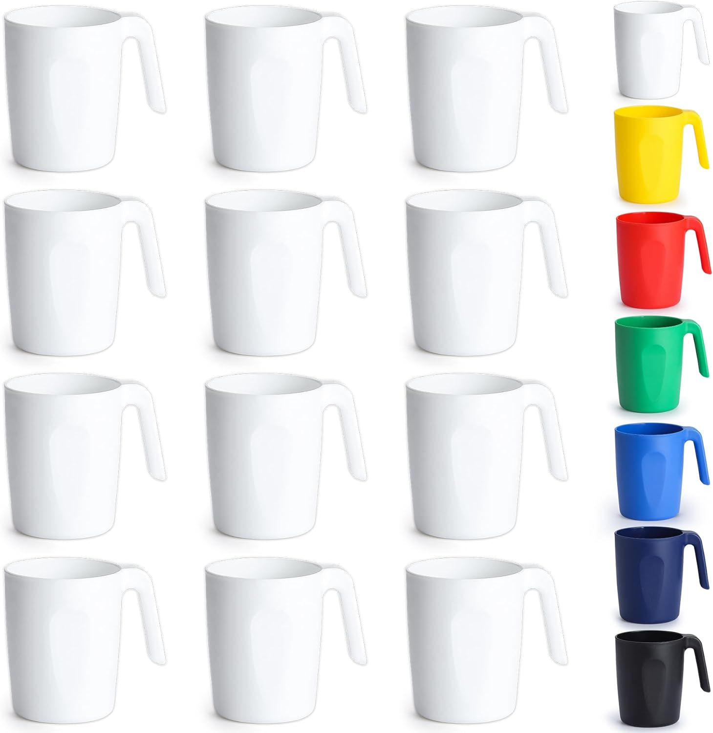 Kyraton Plastic Mug Set 12 Pieces, White Unbreakable And Reusable Light Weight Travel Coffee Mugs Espresso Cups Easy to Carry And Clean, Dishwasher Safe