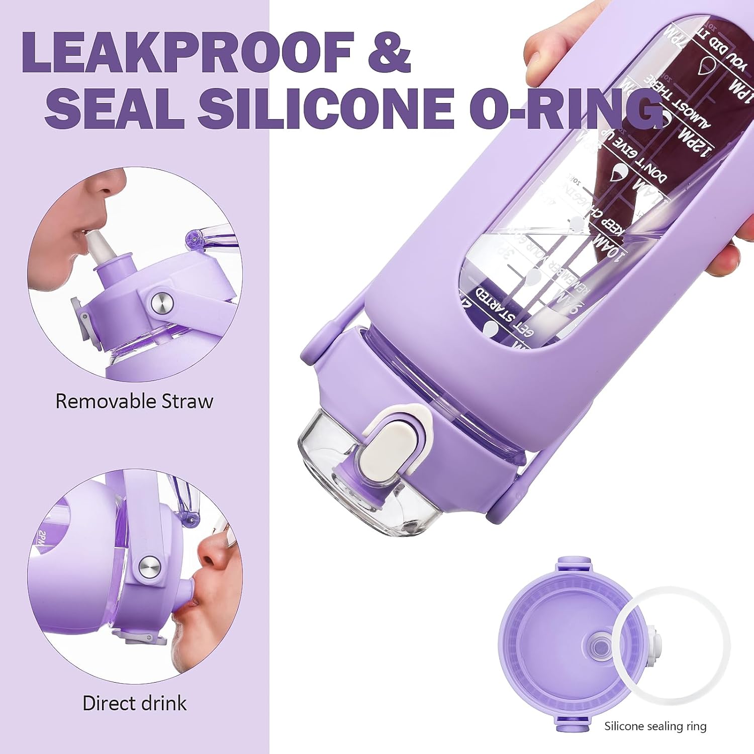 - ❤High-Quality Borosilicate Glass Bottle- This large motivationla water bottle is made of odorless, quality, borosilicate glass. Straw and lid are made of food-grade PP, BPA-free and eco-friendly.