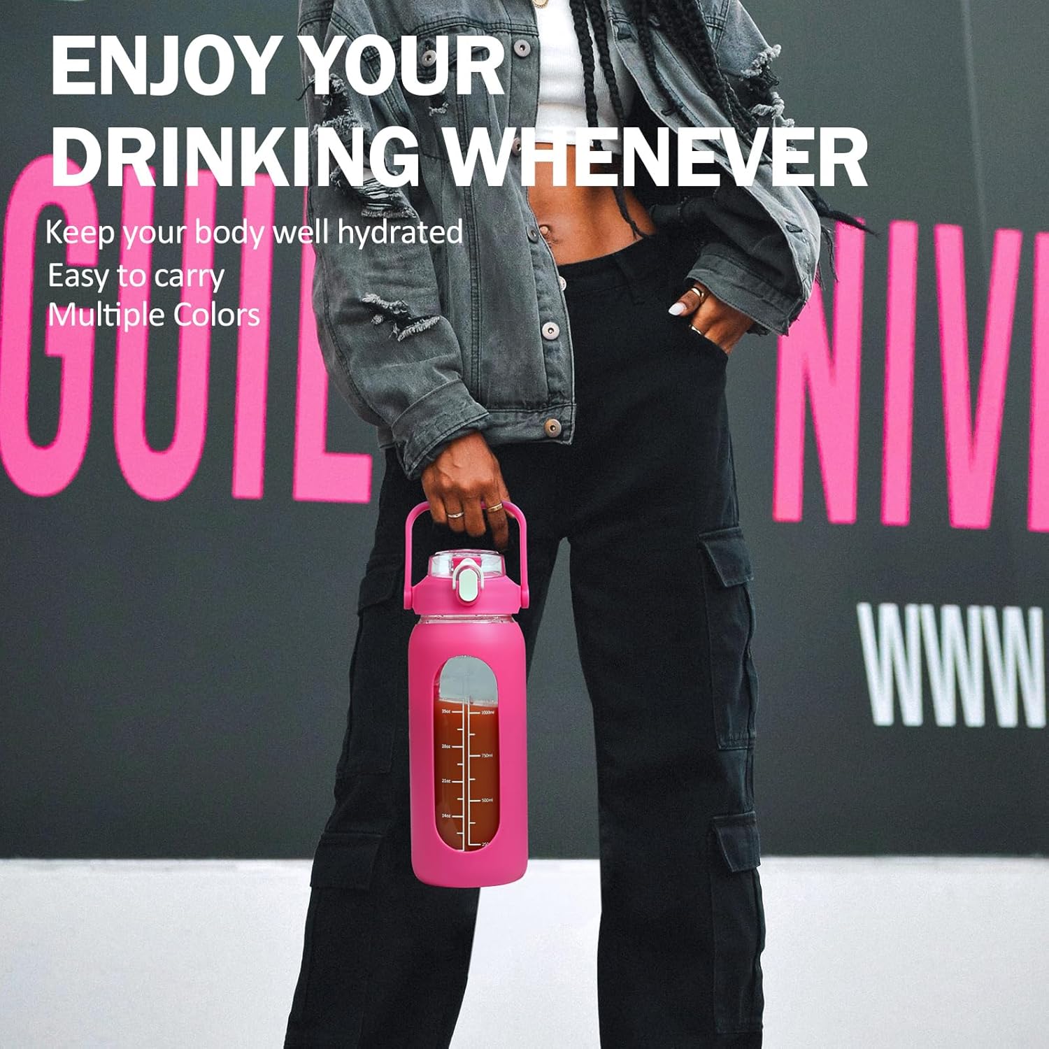 - ❤High-Quality Borosilicate Glass Bottle- This large motivationla water bottle is made of odorless, quality, borosilicate glass. Straw and lid are made of food-grade PP, BPA-free and eco-friendly.