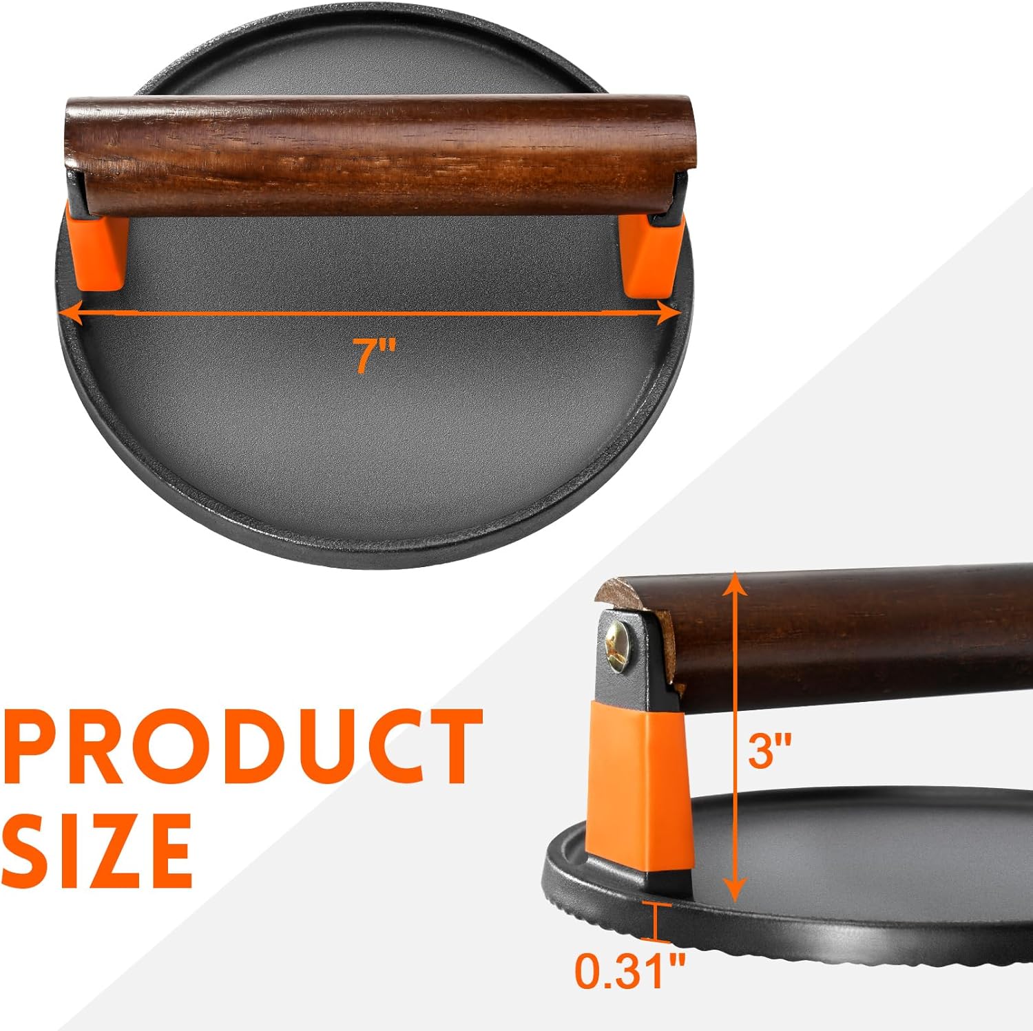 - 【Superior Quality】: GGC smash burer press made of heavy-duty cast iron, durable and sturdy, not easily deformed. Food-grade cast iron material is easier to restore the original flavor of food. Perfect for patties, sandwiches, bacon, veggies, eggs on the griddle