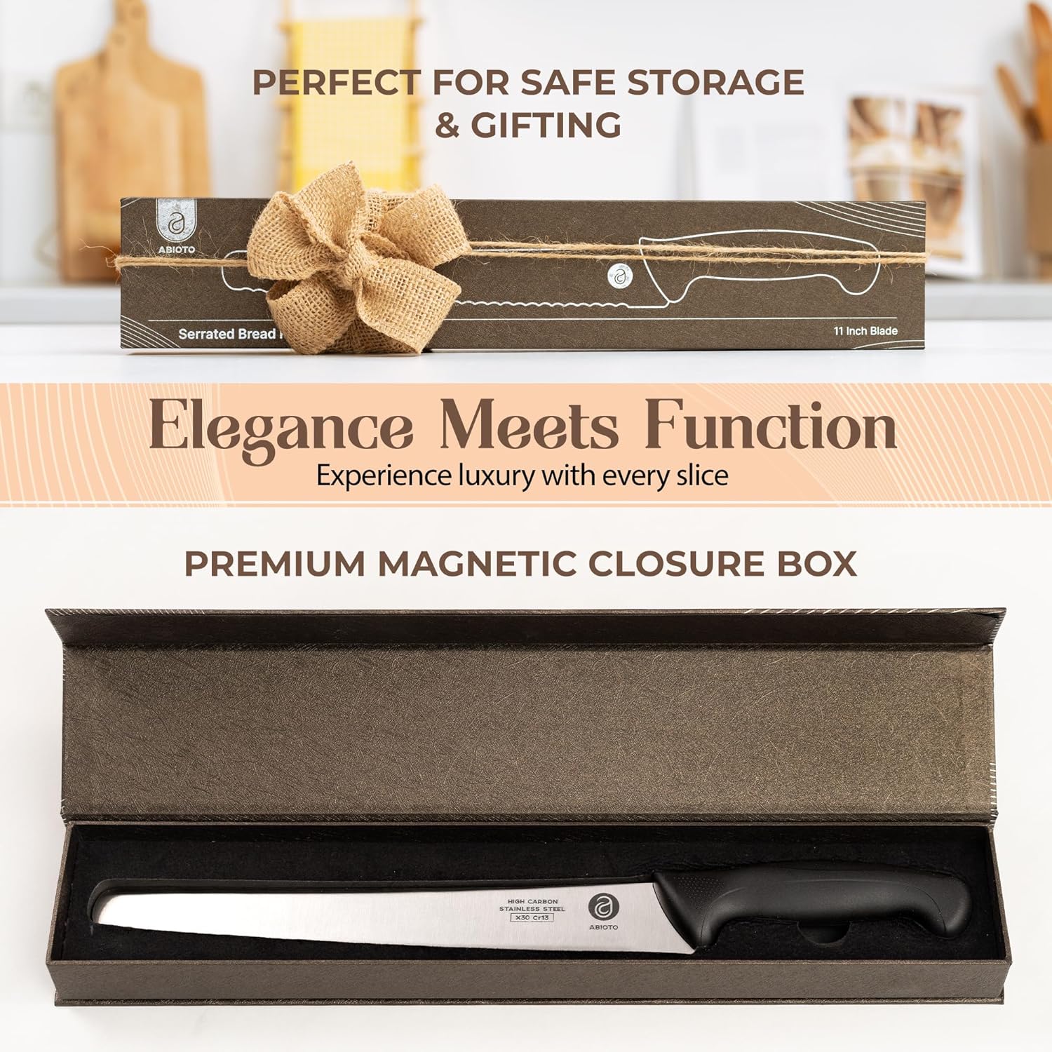 - Exceptional Sharpness Retention: ABIOTO's serrated bread knife features unique one-sided serrations, ensuring long-lasting sharpness for effortless bread slicing.