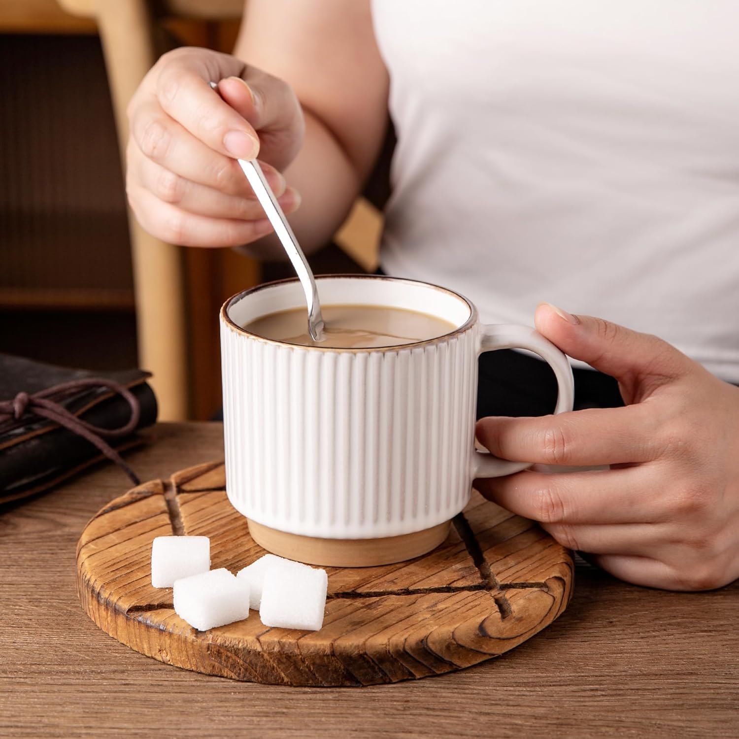 - Stackable and Modern Design: These ceramic mugs feature a beautiful embossed texture design, the smooth rim ensures a comfortable drinking experience, the stackable design allows for easy storage and helps save space in your kitchen.