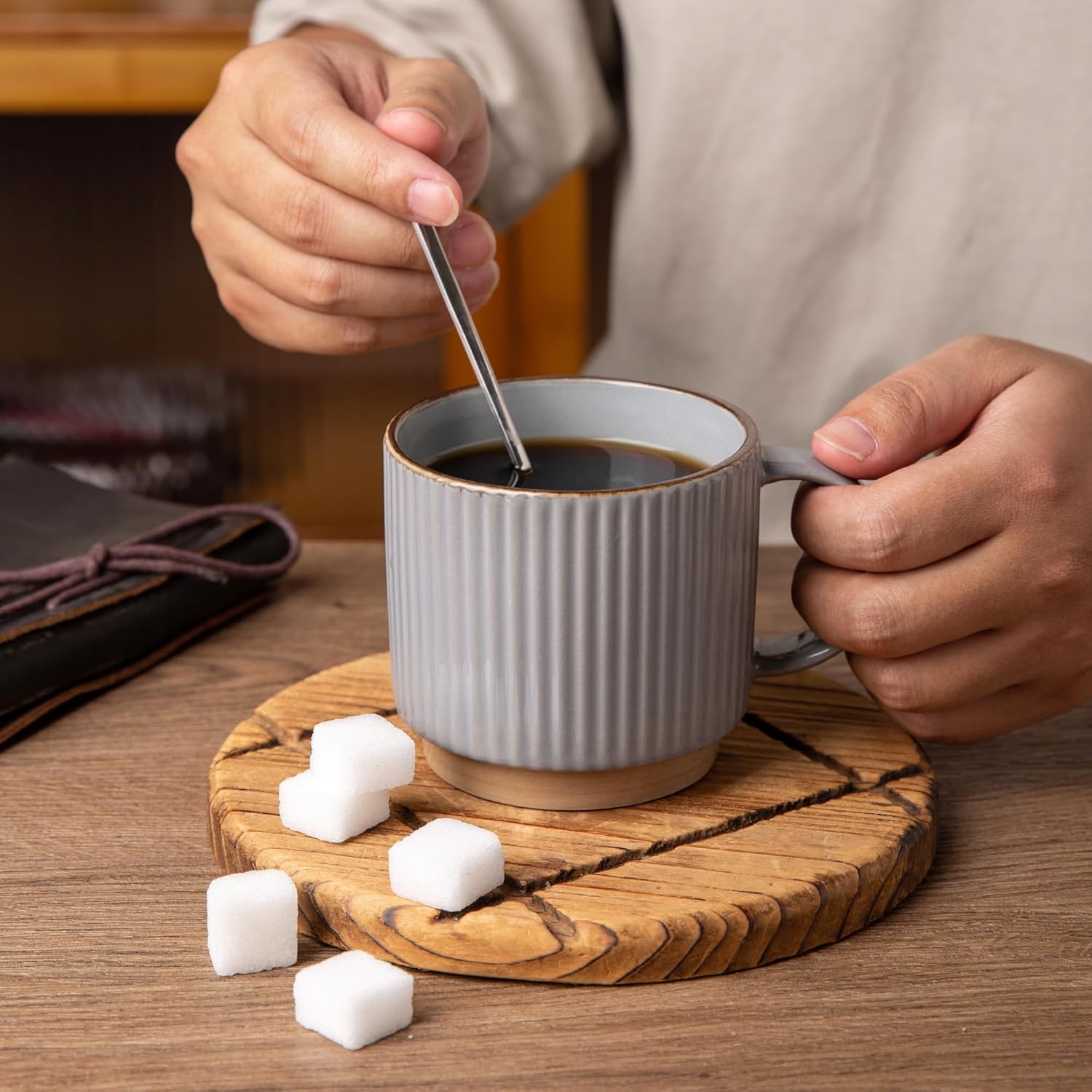 - Stackable and Modern Design: These ceramic mugs feature a beautiful embossed texture design, the smooth rim ensures a comfortable drinking experience, the stackable design allows for easy storage and helps save space in your kitchen.