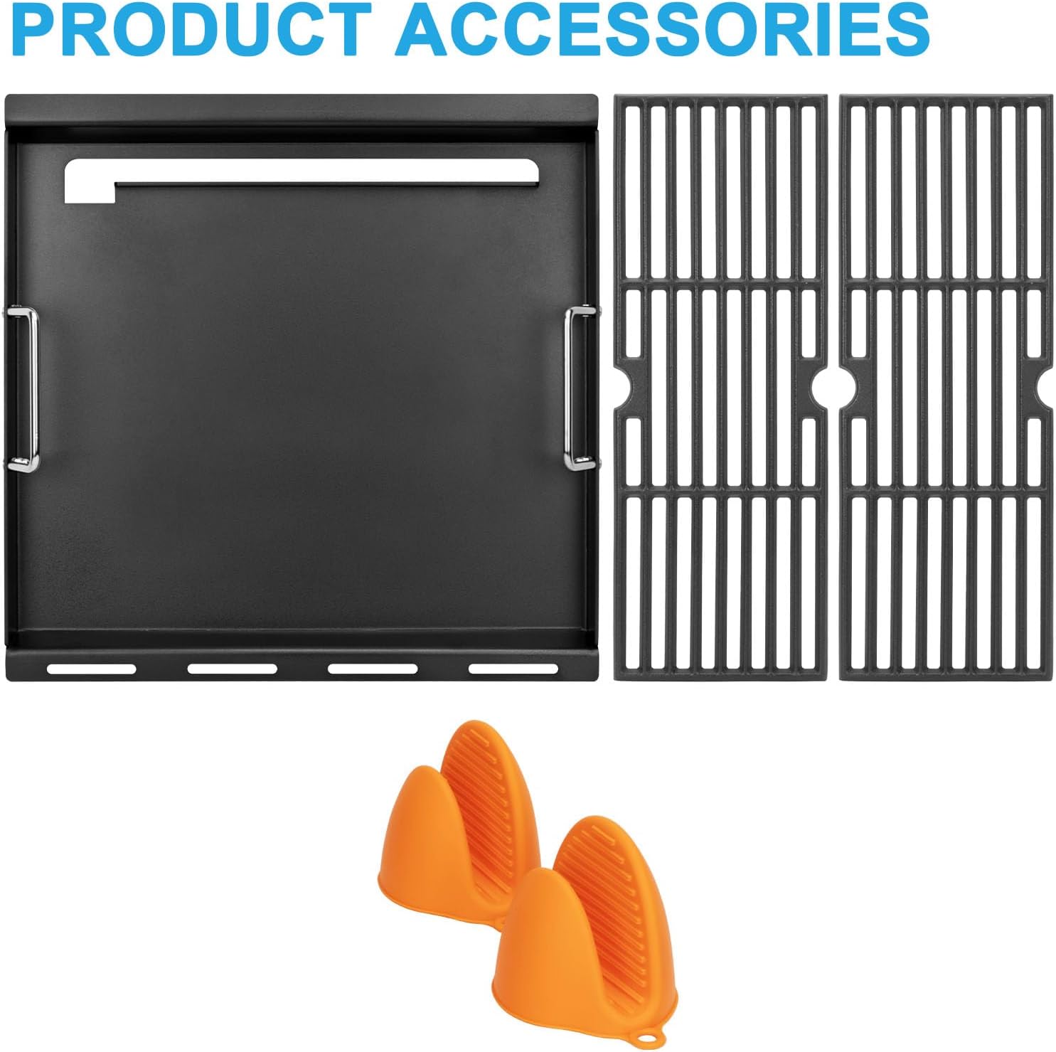 - Product Features: More strong corrosion, rust-proof and heat resistant. Perfect for grilling bigger pieces of meat, sausages or bread on the grill. You can also cook some foods on the griddle that can't be cooked on the grill grid and experience the fun of both accessories at the same time.Heats your food evenly for great taste.Leave professional and beautiful sear marks on the food. Let you and your family enjoy BBQ more!