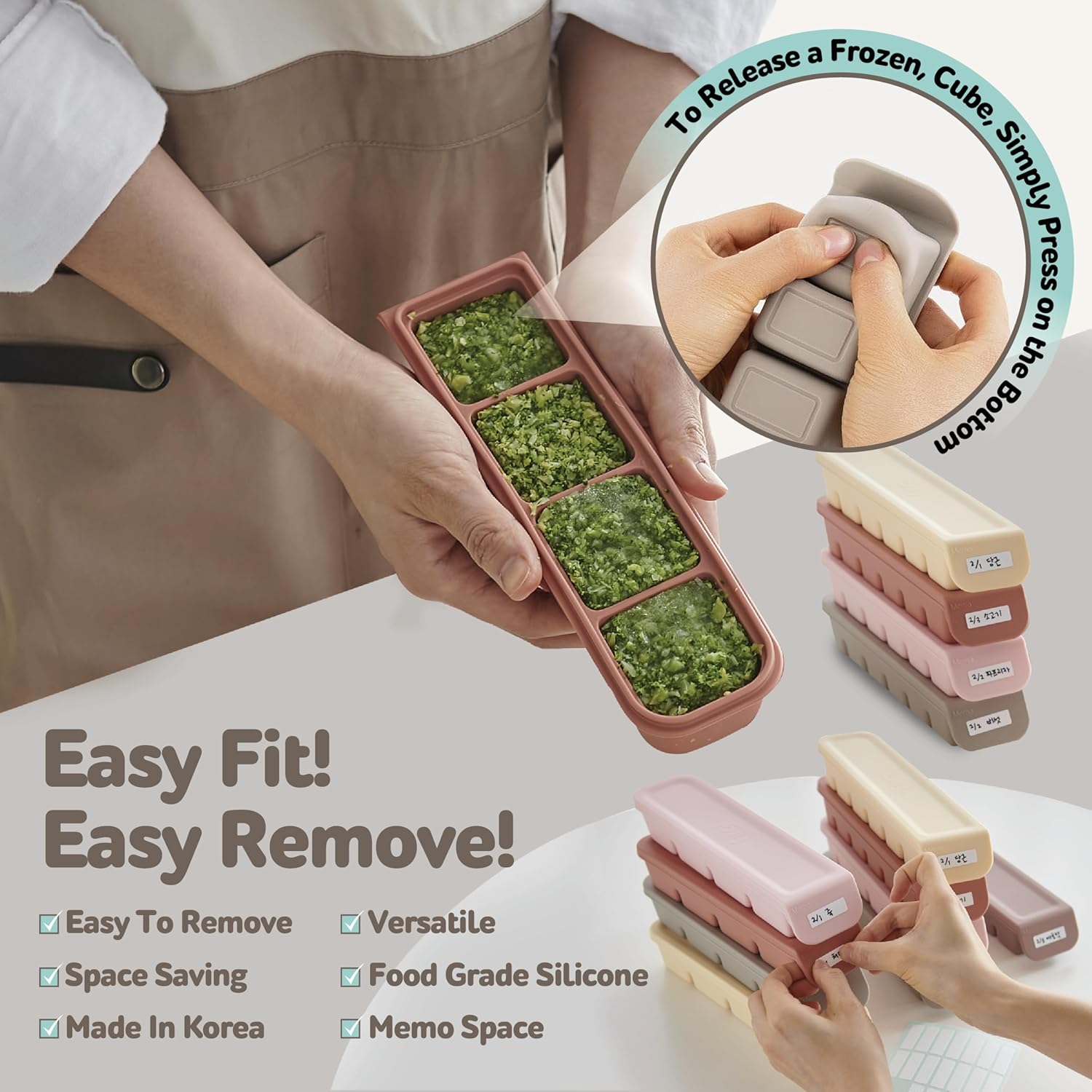 - 【Hassle-Free Use】 Easily remove frozen contents by pressing on the bottom of the flexible silicone compartments. The silicone baby food freezer tray is dishwasher safe, saving you time and effort