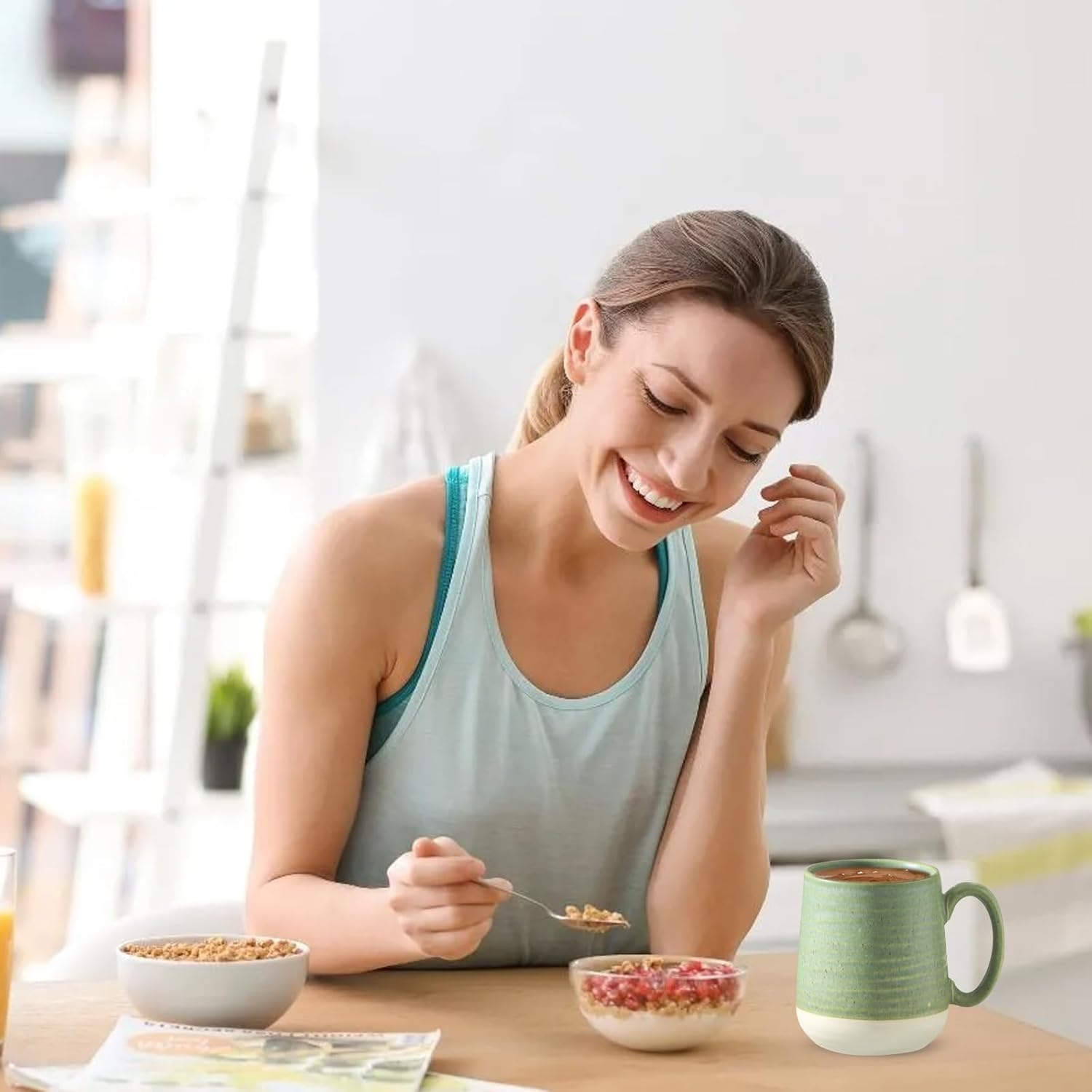Hasense Porcelain Coffee Mugs Set of 4, 15 Oz Large Coffee Cups, Latte Cup with Handle, Tea Mugs for Men and Women, Modern Coffee Mug for Cappuccino, Milk, Cocoa, Microwave & Dishwasher Safe, Green