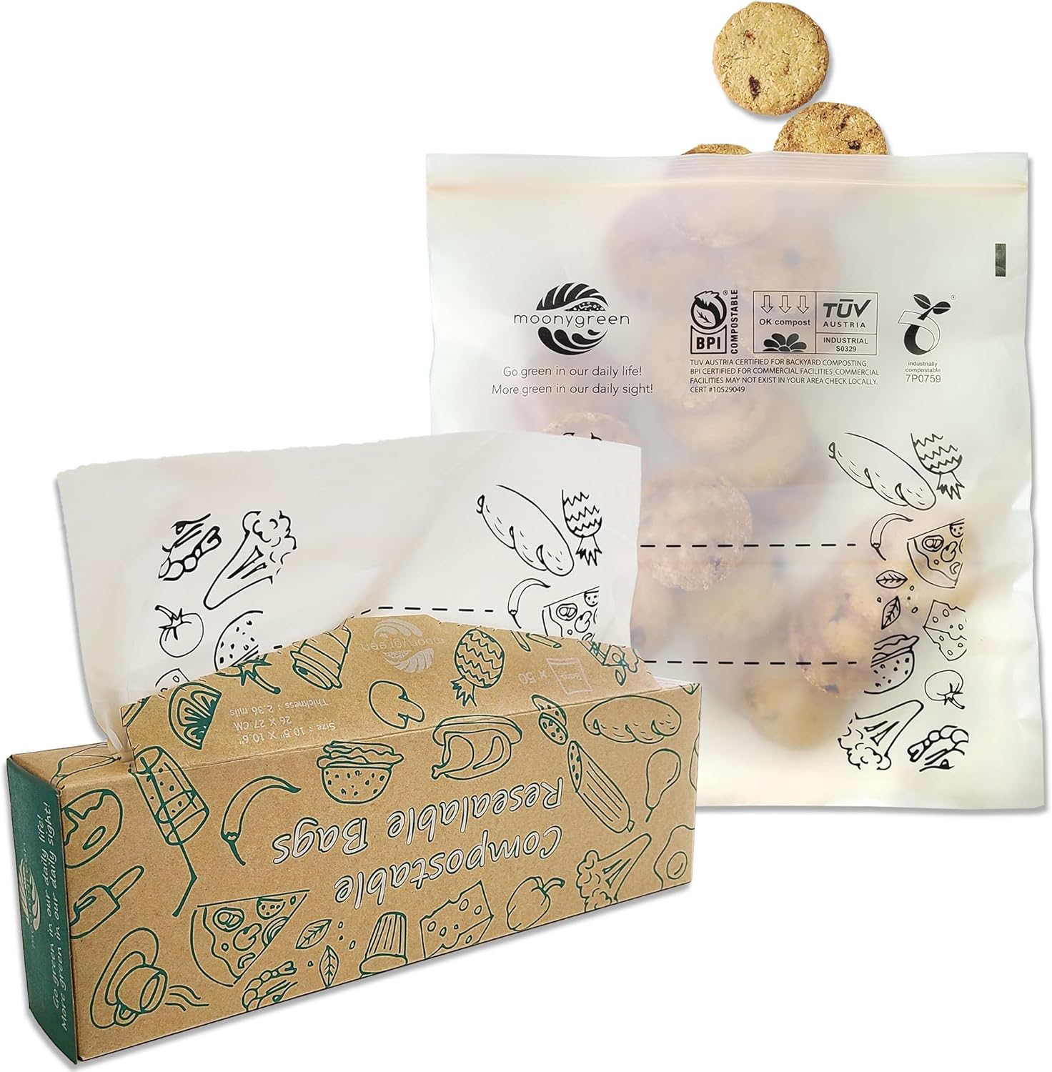 - π± Moonygreen Resealable Food Storage bags have acquired the highest-rated ASTM D6400, European standard EN 13432 and BPI certified, proving that the bags are compostable with industrial facilities.