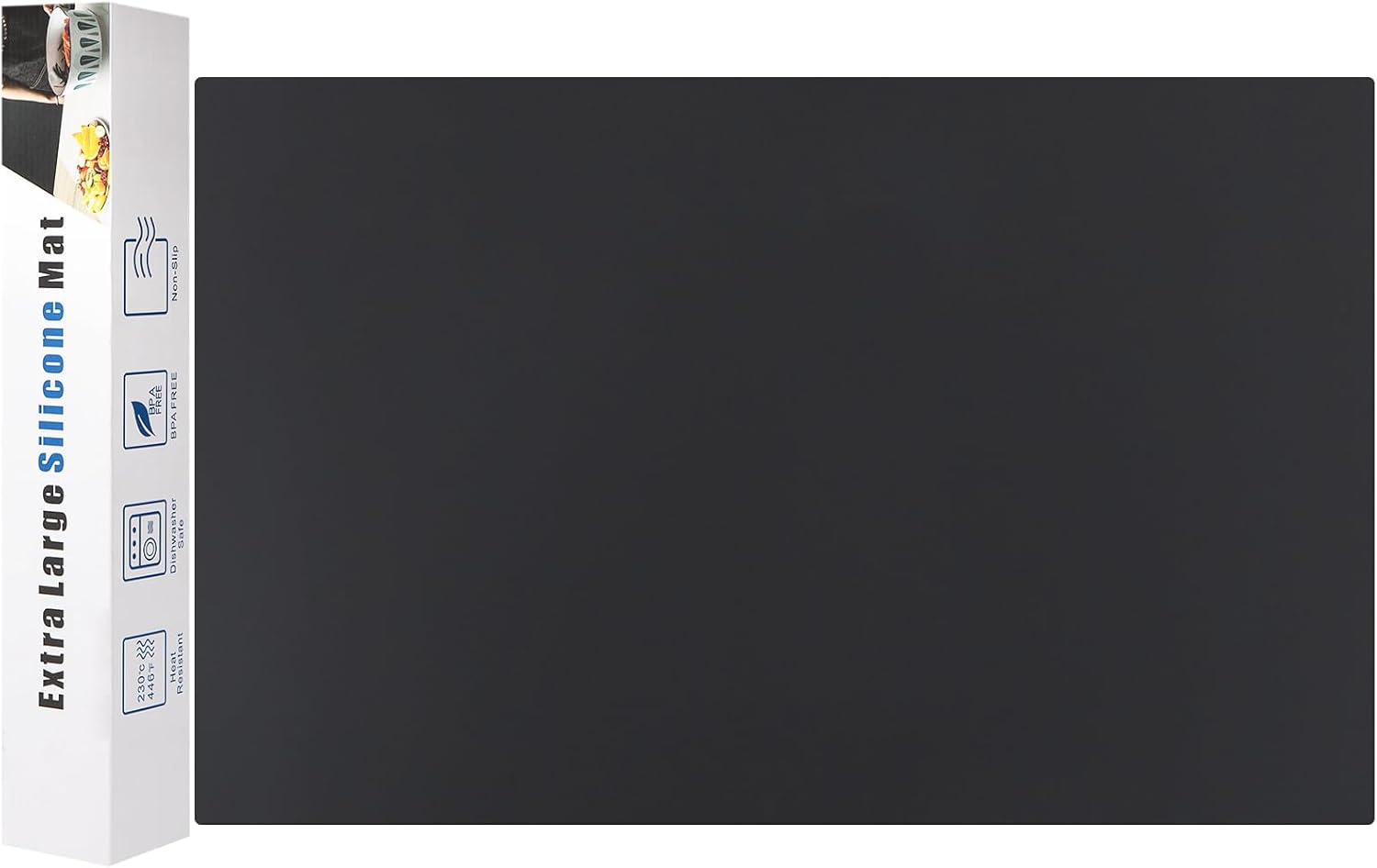 Silicone Mats for Kitchen Counter Thicker Extra Large Heat Resistant Mats Countertop Protector Liners for Bottom of Oven Air Fryer Coffee Maker, 24" x 16" x 2 mm, Black