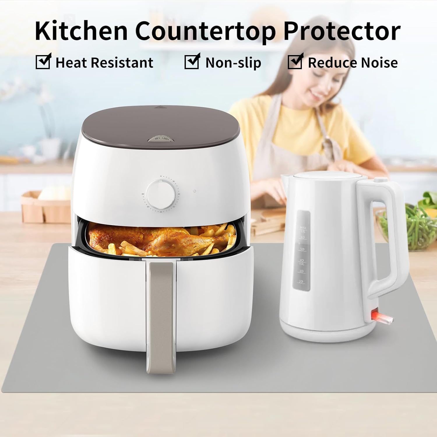 - Extra large silicone mat: Size of 24β x 16β, it can be placed under the air fryer, microwave, toaster oven, induction stove, coffee maker to protect the kitchen countertops and other surfaces against spills, scratches, grease, heat, etc.And it also reduces the noise of the appliance when running.