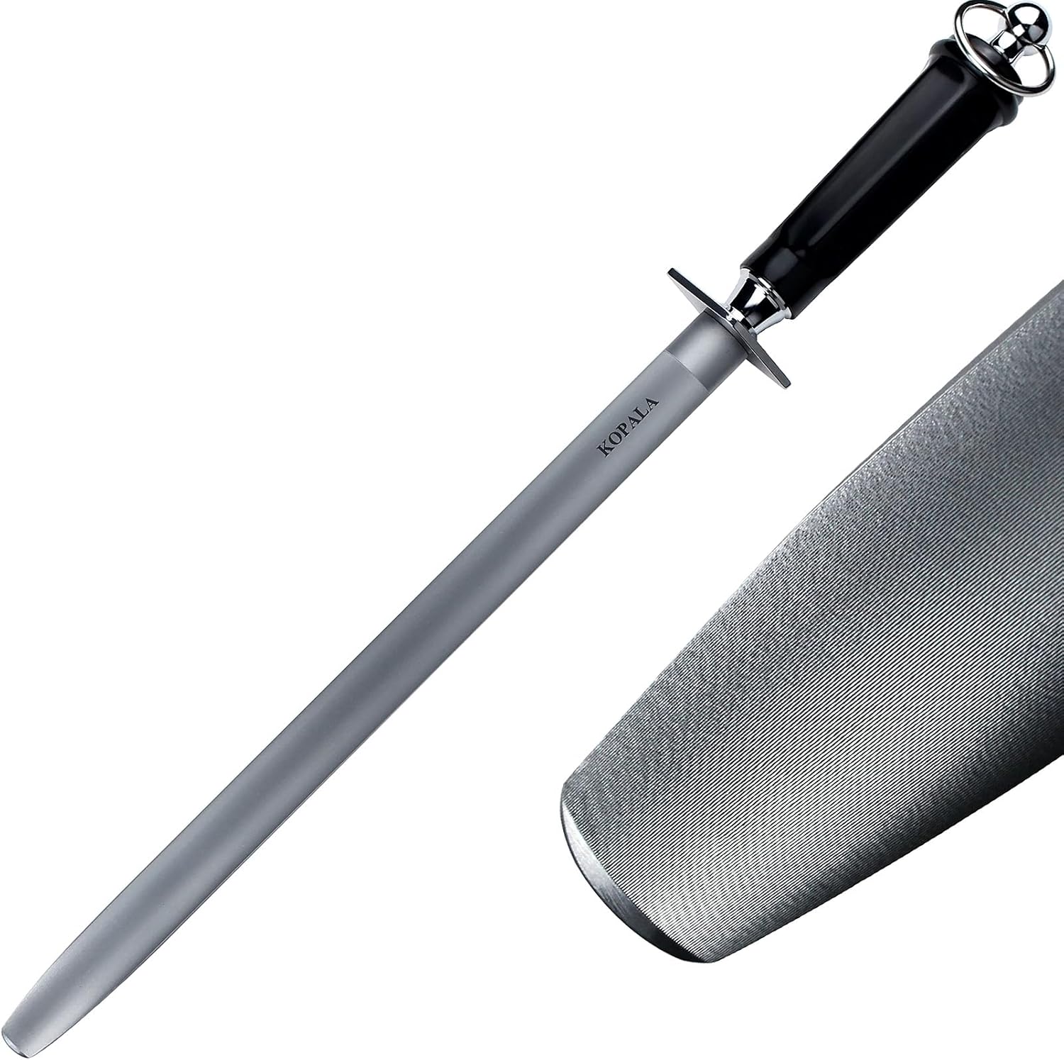 - [Surface Sandblasting Process]: We have additional sandblasting on the rod, which greatly enhances the friction of the sharpening rod, and the 12 inches flat rod has a longer effective distance & contact area than the 10 inches round rod, which will help you correct your blade more effectively;