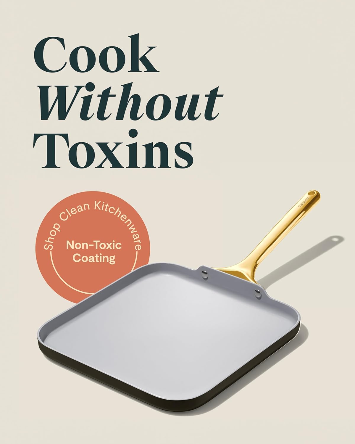 Caraway Square Griddle Pan - 11” Square Pan - Non-Stick Ceramic Coated - Non Toxic, PTFE & PFOA Free - Oven Safe & Compatible with All Stovetops - Black