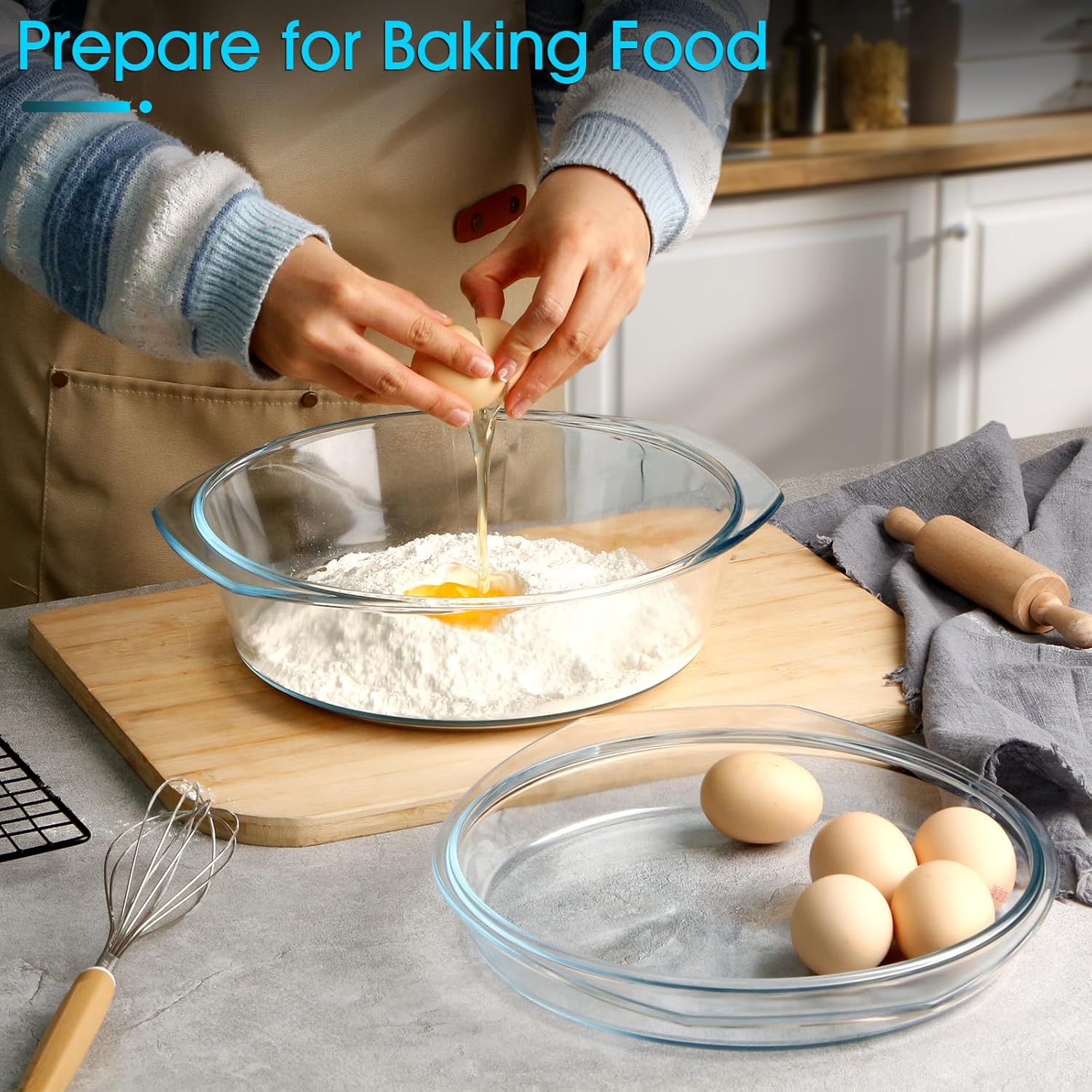 - 【Large Capacity】With a generous capacity of 3 liters, this round glass casserole dish allows you to cook large portions of food, perfect for family meals or gatherings. It provides ample space to prepare your favorite recipes and can easily accommodate multiple servings. Whether you're cooking casserole,baked potatoes, or a savory stew, this dish has the capacity to handle it all.