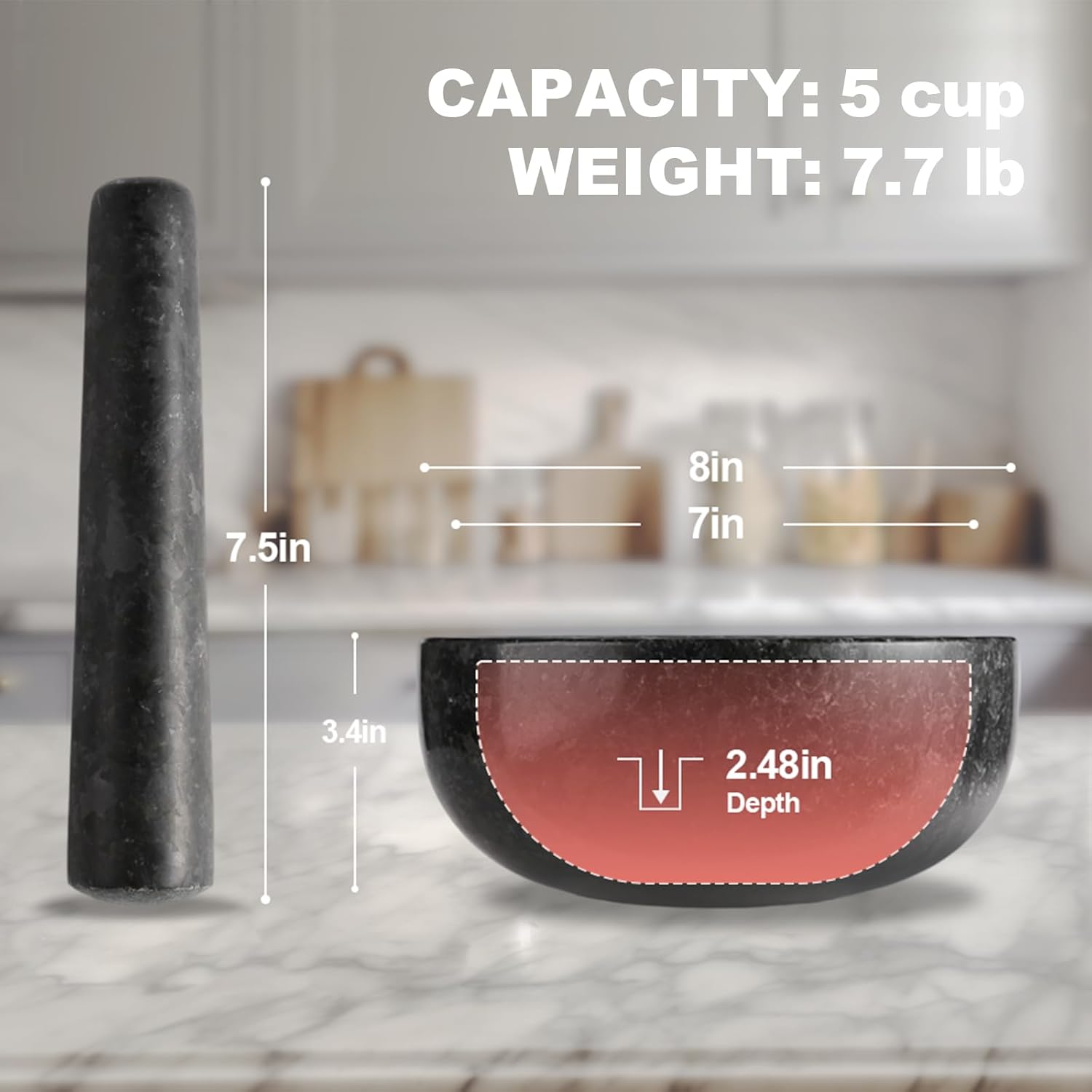 Koville Granite Mortar and Pestle Set, 8" Extra Large Grinder Bowl for Guacamole, Salsa, Pill Crusher, Spice, Herb, Garlic, Nut, Heavy Duty Grinder for Kitchen