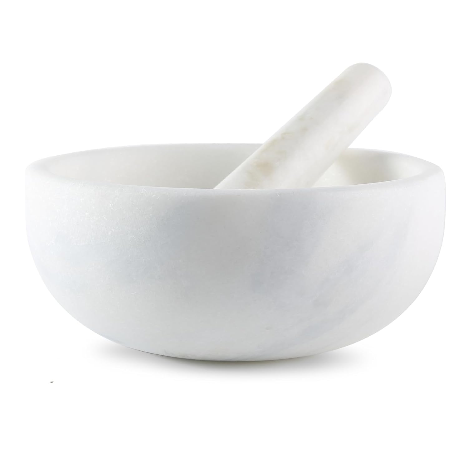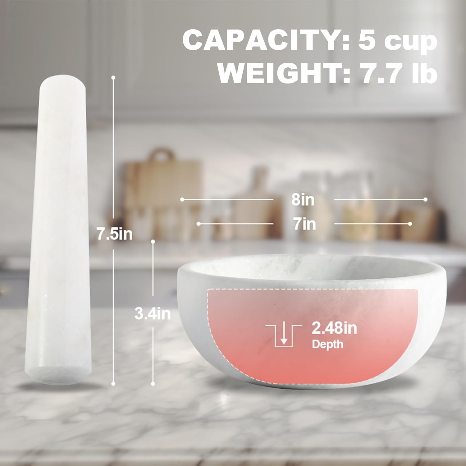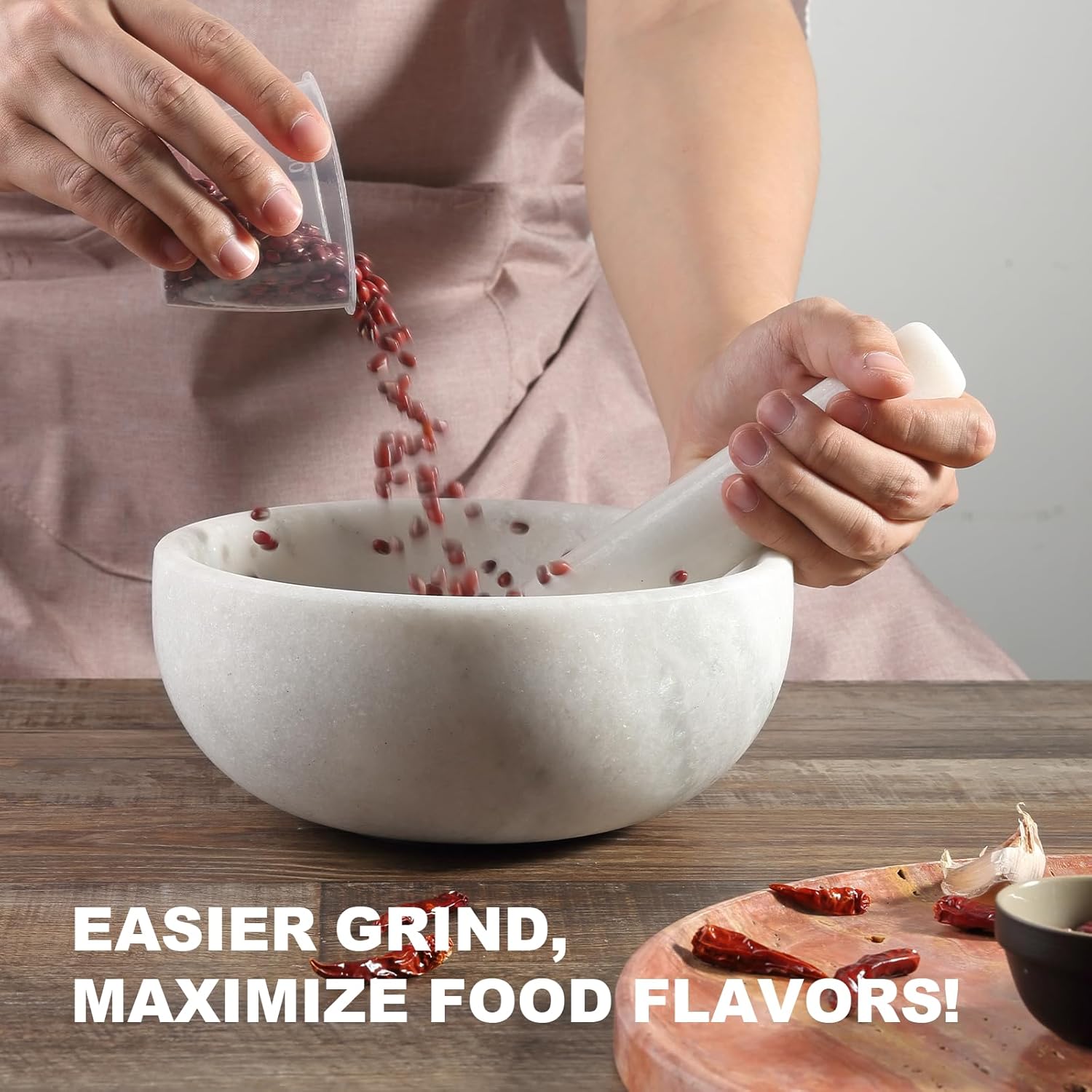 - 【Healthy and Safety】The marble mortar and pestle set is super safe in contact with food. Natural stone has superior safety properties that will not spoil the flavor of food or leave food residue, The external is well-polished, super easy to clean.
