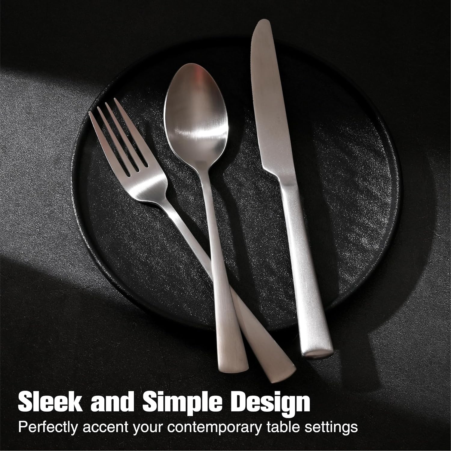 KINGSTONE Forged Silverware Set, 20 Piece Flatware Set for 4, 18/10 Stainless Steel Silverware Matte Satin Finish Dishwasher Safe
