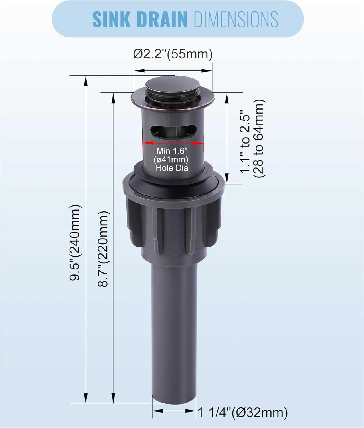 ALEASHA Bathroom Sink Drain with Overflow Vessel Sink Stopper,Pop Up Drain for Bathroom Sink Pop Up Drain Stopper for Hair Catcher,Oil Rubbed Bronze