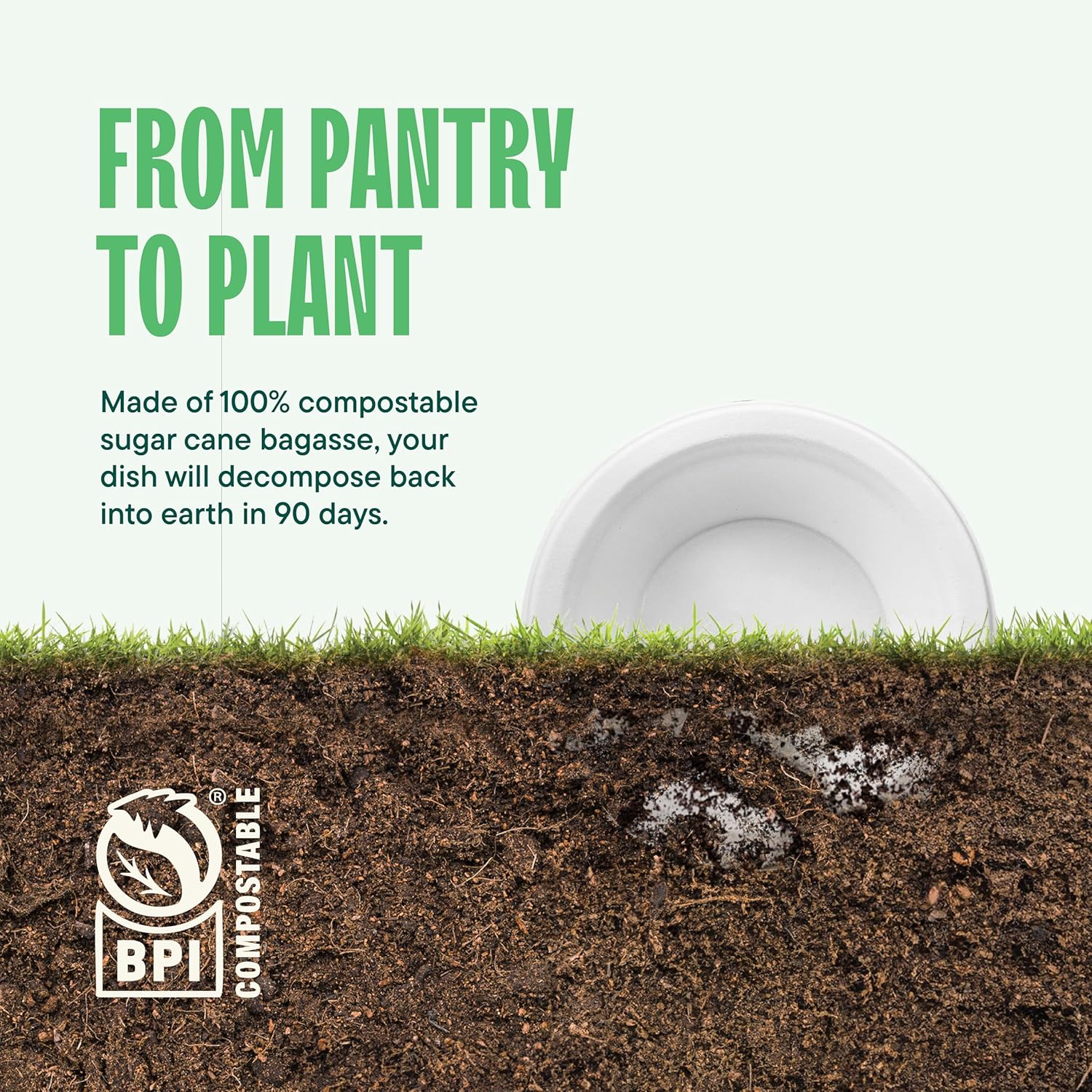 - 100% Sugarcane Fiber: The Twelve Ounce Bowls are Made of 100% Sugarcane Fiber, a Sustainable, Renewable, and Biodegradable Material. A great Alternative to Traditional Paper or Plastic, the Disposable Bowl Offers the same Sturdy Function and Easy Cleanup, Yet itβs Completely Tree- and Plastic-free.