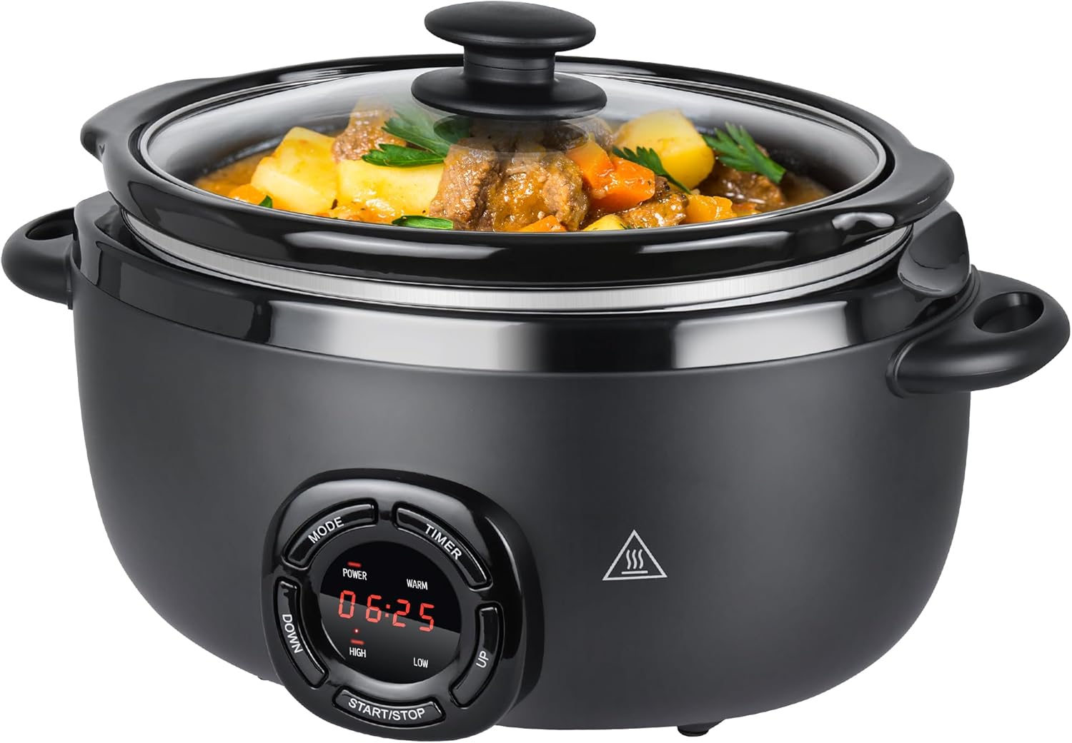 - 【Safe and Efficient Operation】The digital slow cooker operates at 120V 320W, providing efficient and reliable performance for slow cooking, braising, roasting, and steaming, offering a versatile solution for preparing a wide range of recipes.