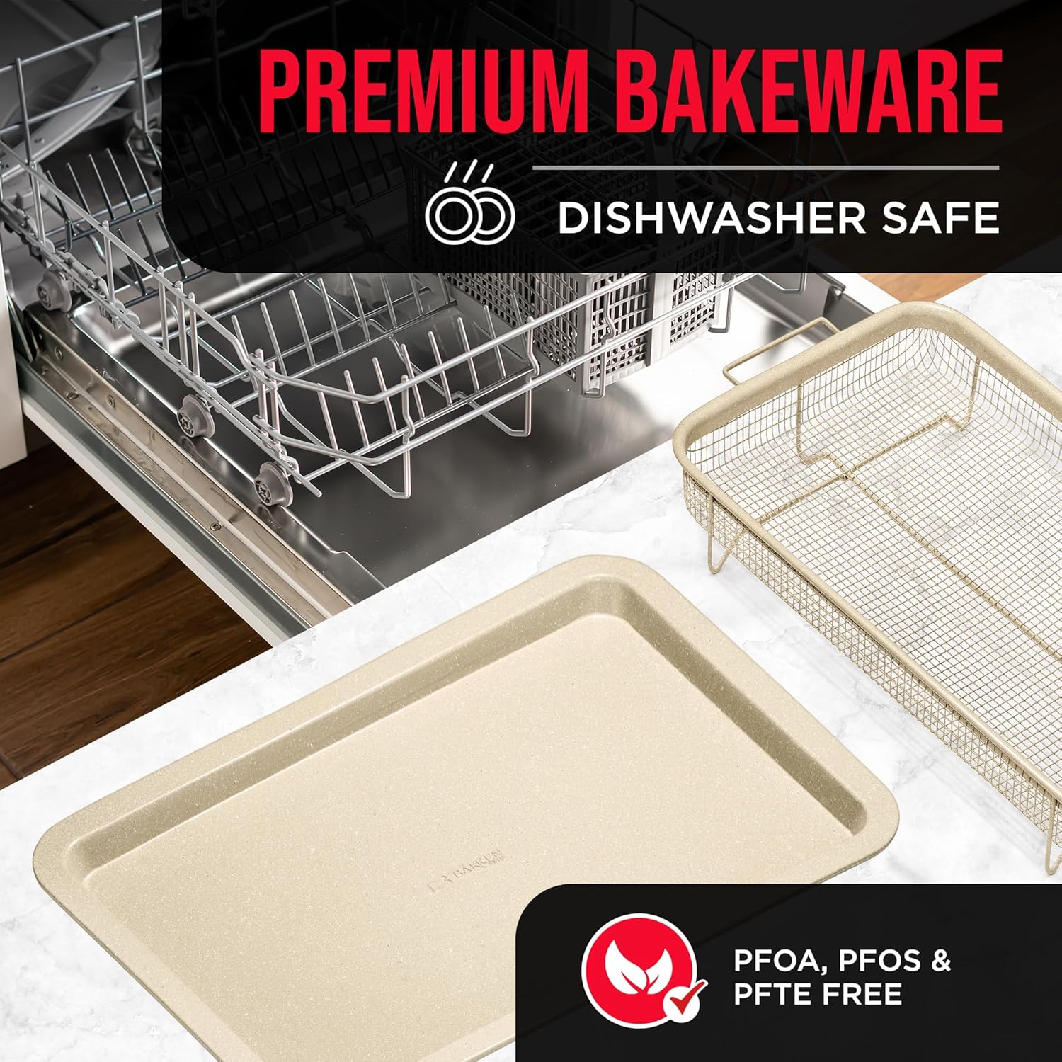 - EFFORTLESS CLEANING - our crisper tray oven pan is dishwasher safe, making cleanup a breeze. Spend less time on kitchen chores and more time enjoying your delicious, crispy creations such as chicken, homemade potato chips, pizza’s, coated chicken, bacon and more