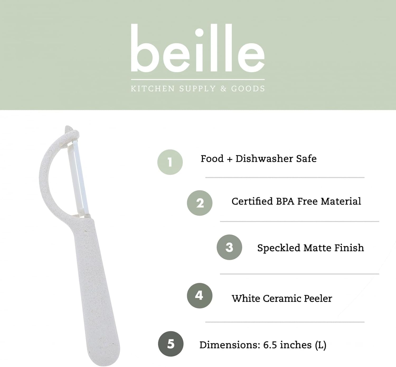 - VEGETABLE PEELER: Beille’s potato peeler is a must have home essentials item to have in your kitchen! The apple peeler features a rounded handle with a speckled matte finish, ensuring a comfortable and controlled grip, making food and meal prep a breeze