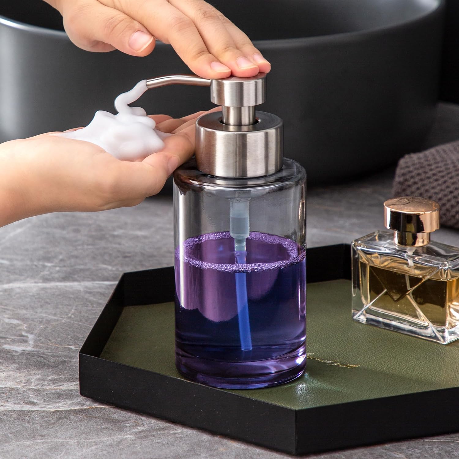 Enra Foaming Soap Dispenser, 12oz Thick Glass Body with Stainless Steel Pump, Bathroom & Kitchen (Silver Foam Dispenser)