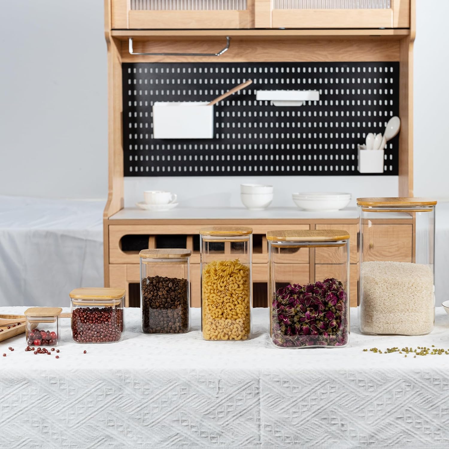 - [Transparent jar]- Transparent square glass containers make your items visible, allowing you to clearly see the contents of the glass storage jar and the remaining stock, and then you can easily replenish the food that is about to run out.