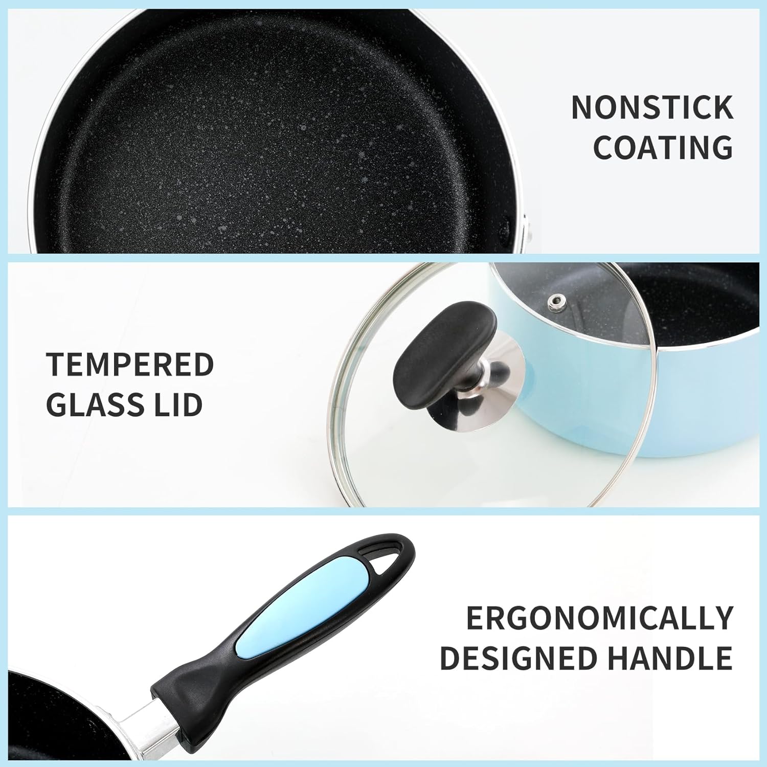 Nonstick Saucepan Set with Lid, Non Stick 1Qt & 2Qt Sauce Pan Set with Glass Lid Small Pot for Home Kitchen
