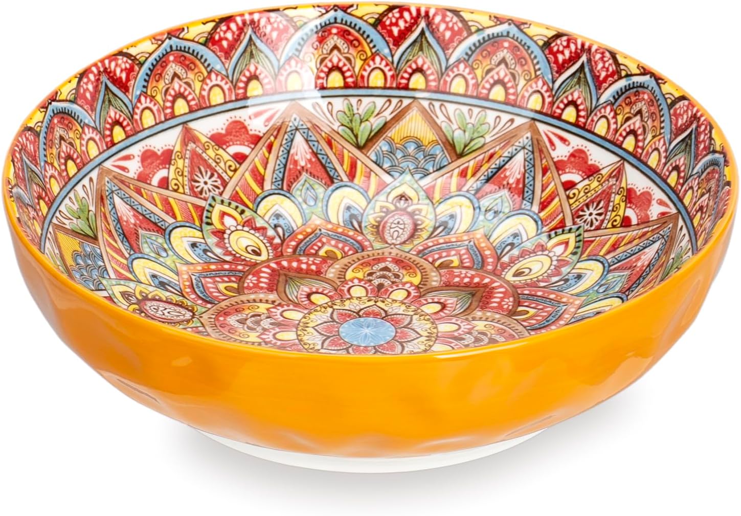 75 Oz Serving Bowls,Bohemian Style Large Porcelain Dishes for Entertaining Parties,Big Bowls for Eating Soup, Salad, Pasta, Fruit, Chips, 10.3 Inch Diameter (orange)