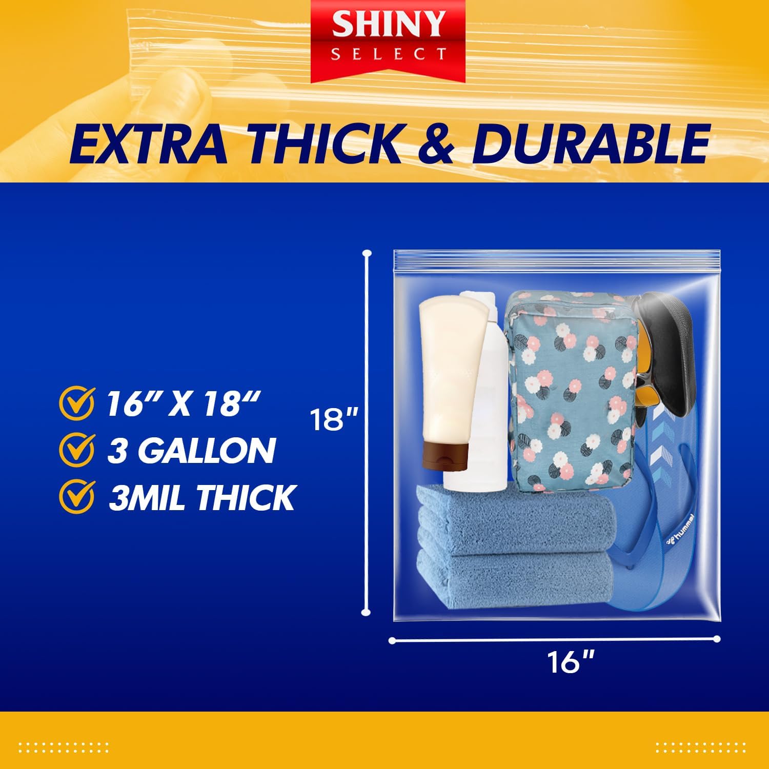 Extra Large Plastic Storage Bags With Zipper Top 3 Gallon 16" x 18" Jumbo Size Bag Heavy Duty 3 Mil Thick Clear X-Large Big Zip Bags for Food Freezer Clothes Travel Moving (12)