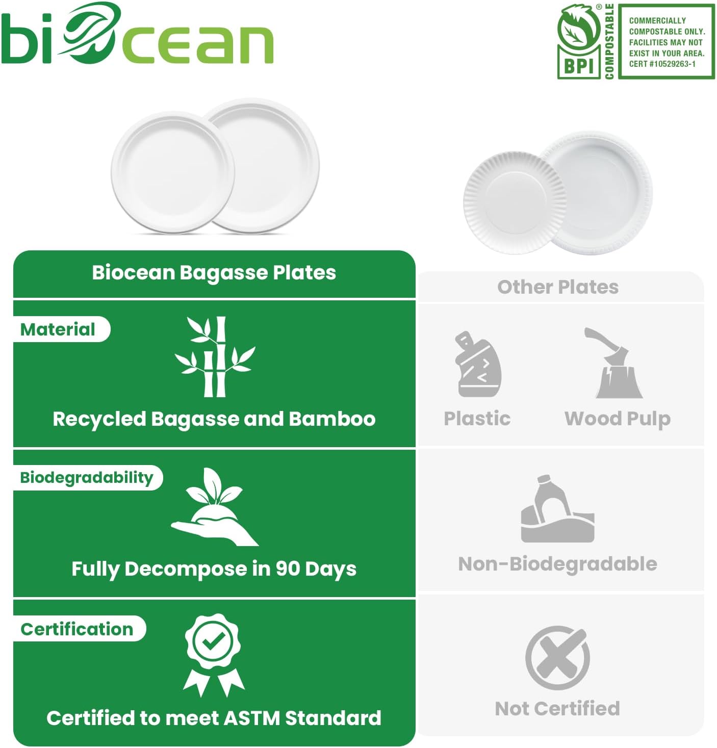 - Chemical-Free Pledge - Our disposable plate take an extra stride for cleanliness, free of PFAS and devoid of plastic or wax coatings. Beyond the green choice, they prioritize your family's health, aligning your values with a sustainable, chemical-free dining experience. Make a choice that resonates with a greener future by choosing Biocean compostable plates