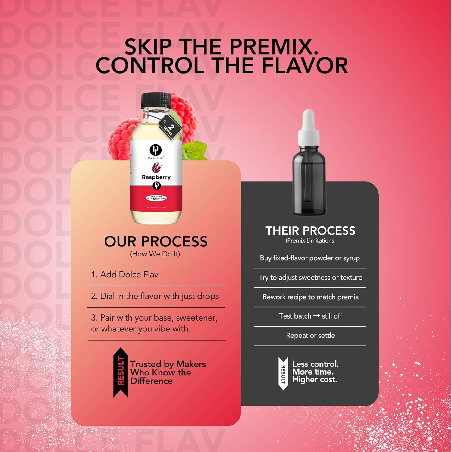 Dolce Flav Natural Raspberry Extract 2 oz – Kosher, Sugar-Free, Concentrated Tart Raspberry Flavoring for Baking, Beverages & Desserts, Includes Measured Dropper